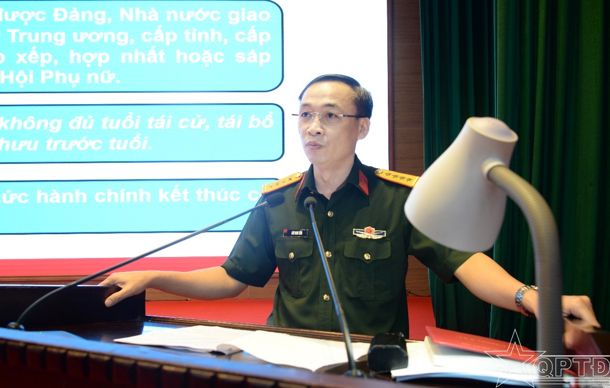 Tại hội nghị, các đại biểu đã được quán triệt, triển khai những nội dung cơ bản trong Thông tư số 19 của Bộ Quốc phòng về hướng dẫn thực hiện chính sách, chế độ đối với các đối tượng thuộc phạm vi quản lý của Bộ Quốc phòng trong thực hiện sắp xếp tổ chức bộ máy, tinh giản biên chế, cơ cấu lại, nâng cao chất lượng đội ngũ cán bộ không đủ tuổi tái cử, tái bổ nhiệm hoặc đủ điều kiện về tuổi tái cử, tái bổ nhiệm; cán bộ đang tham gia cấp ủy ở các đảng bộ phải kết thúc hoạt động.