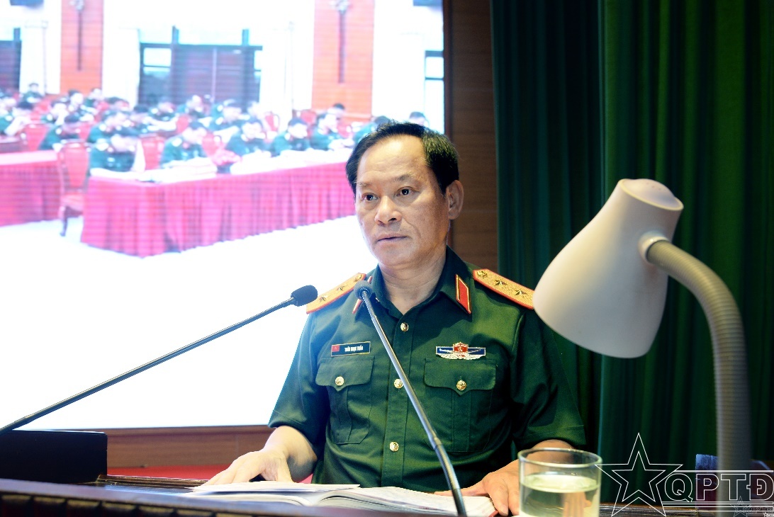 Trung tướng Trần Ngọc Tuấn, Chính ủy Bộ Tư lệnh Tủ đô Hà Nội phát biểu định hướng.