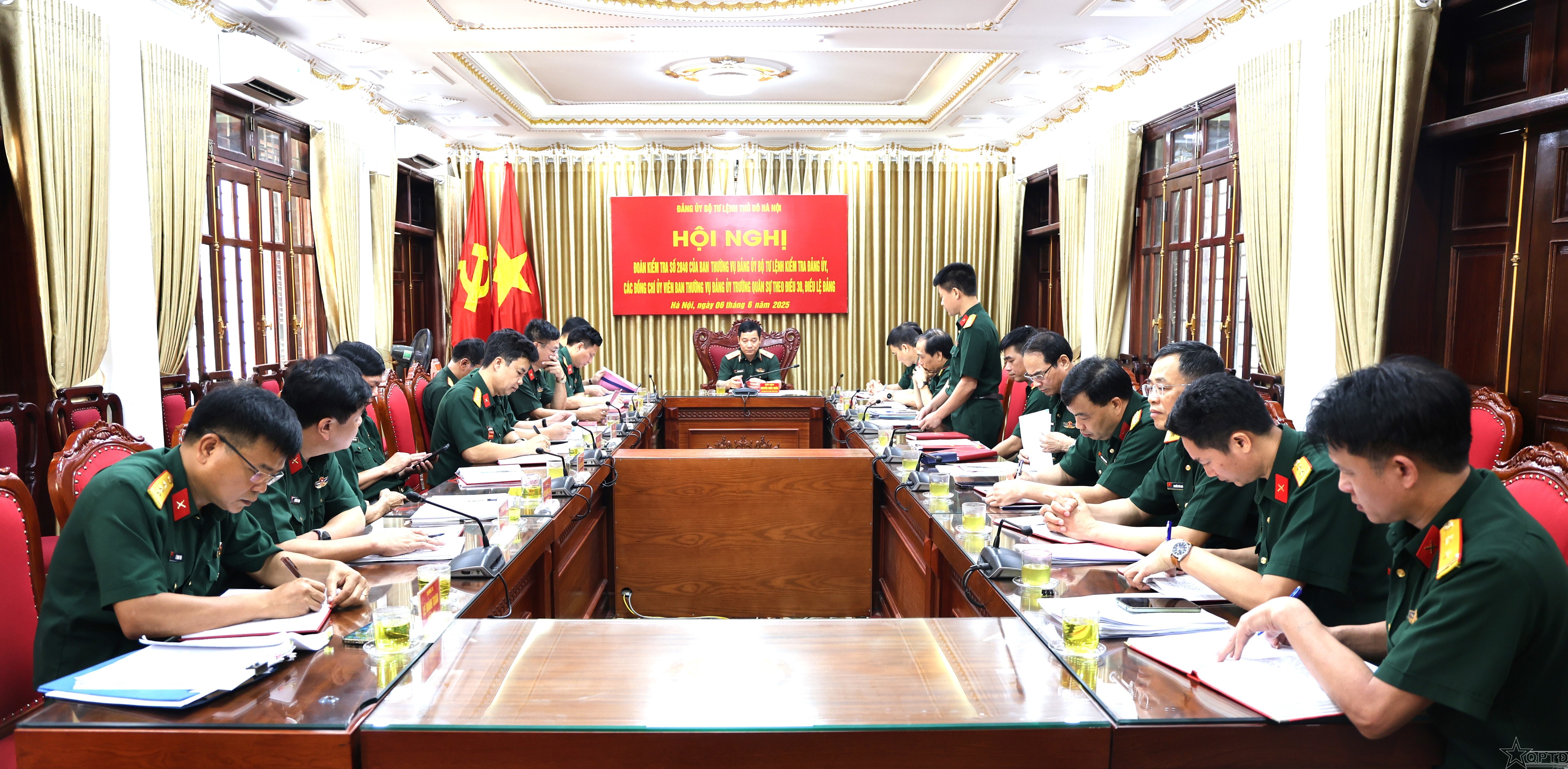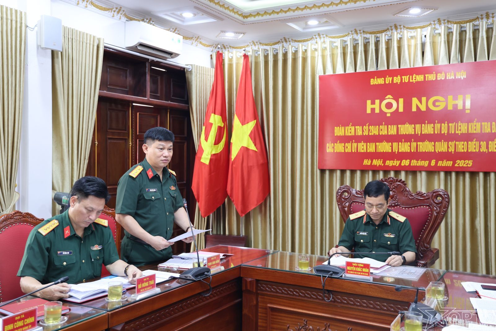 QPTĐ-Sáng 6-6, Đảng ủy Trường Quân sự Bộ Tư lệnh đã tổ chức Hội nghị thực hiện quy trình kiểm tra theo Quyết định số 2848- QĐ/ĐU, ngày 5/5/2025 của Ban Thường vụ Đảng ủy Bộ Tư lệnh về việc kiểm tra Đảng ủy, các đồng chí ủy viên Ban Thường vụ Đảng ủy Trường Quân sự theo Điều 30, Điều lệ Đảng. Thiếu tướng Nguyễn Khắc Nhân, Phó Chính ủy, Chủ nhiệm UBKT Đảng ủy Bộ Tư lệnh Thủ đô Hà Nội chủ trì hội nghị.