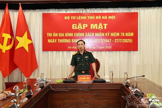 Tại buổi gặp mặt, thay mặt Thường vụ Đảng ủy, thủ trưởng Bộ Tư lệnh Thủ đô Hà Nội, Đại tá Lưu Nam Tiến, Phó Bí thư Thường trực Đảng ủy, Chính ủy đã tri ân, bày tỏ lòng biết ơn sâu sắc đối với công lao to lớn của các anh hùng liệt sĩ, thương binh, người có công với cách mạng trong đấu tranh bảo vệ Tổ quốc; gửi lời thăm hỏi và động viên tinh thần các thân nhân liệt sĩ, con thương binh nhân kỷ niệm 78 năm ngày Thương binh-Liệt sĩ. Đồng chí Chính ủy ghi nhận, biểu dương và đánh giá cao các đồng chí trong thời gian qua đã không ngừng cố gắng, vượt lên hoàn cảnh, khắc phục khó khăn, hoàn thành tốt các nhiệm vụ được giao.