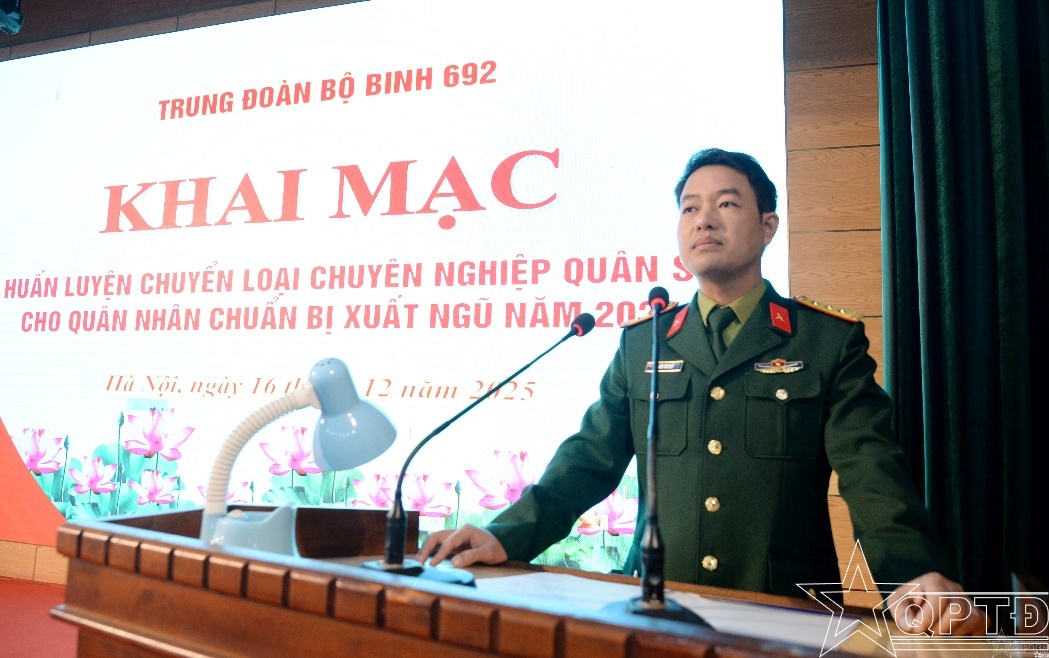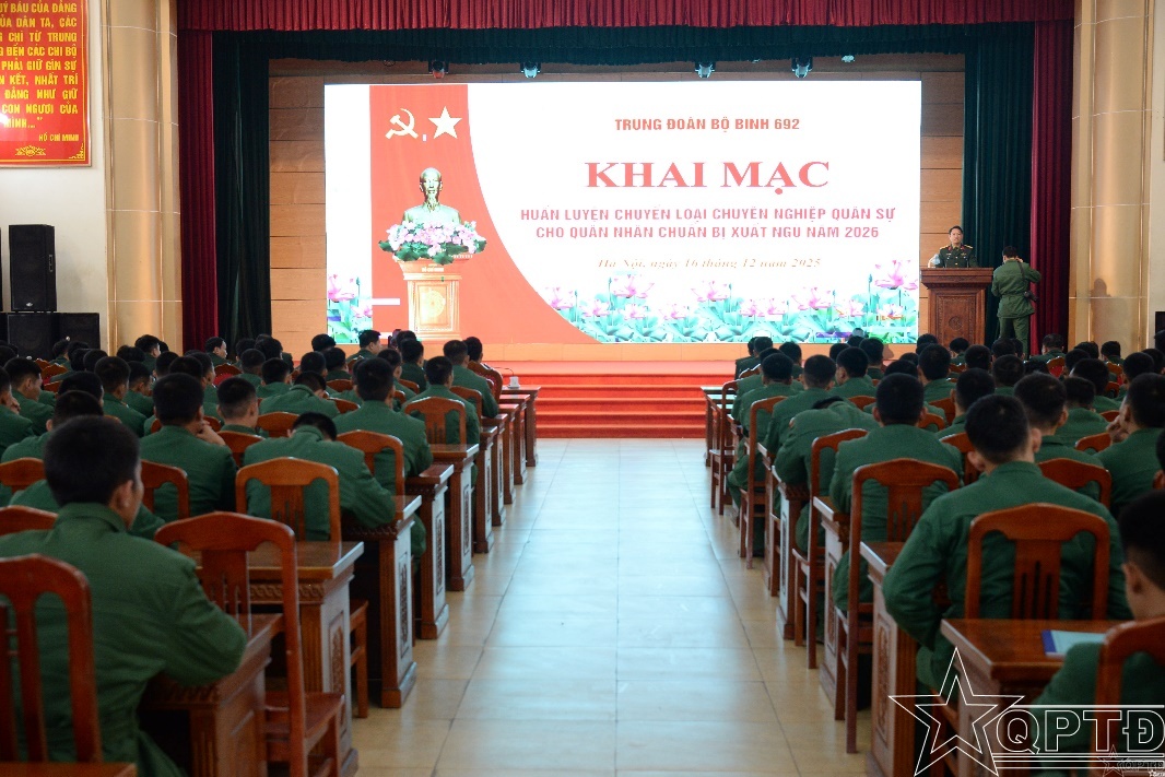 QPTĐ-Sáng 16-12, Trung đoàn 692, Sư đoàn Bộ binh 301 tổ chức khai mạc huấn luyện chuyển loại chuyên nghiệp quân sự cho quân nhân chuẩn bị xuất ngũ năm 2026.