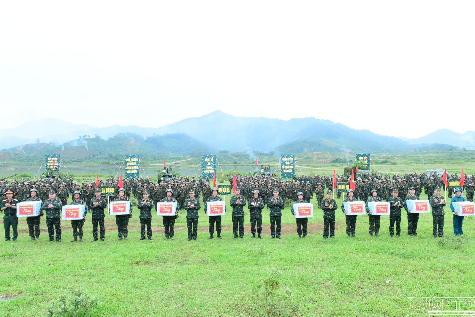 Thủ trưởng Bộ Tư lệnh tặng quà các lực lượng tham gia diễn tập.
