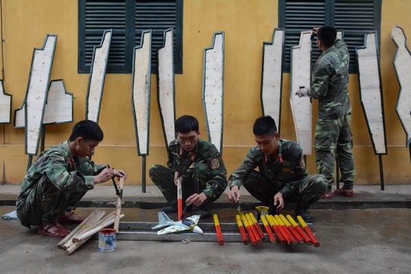Cán bộ, chiến sĩ Tiểu đoàn 6, Trung đoàn 692 củng cố mô hình học cụ huấn luyện.