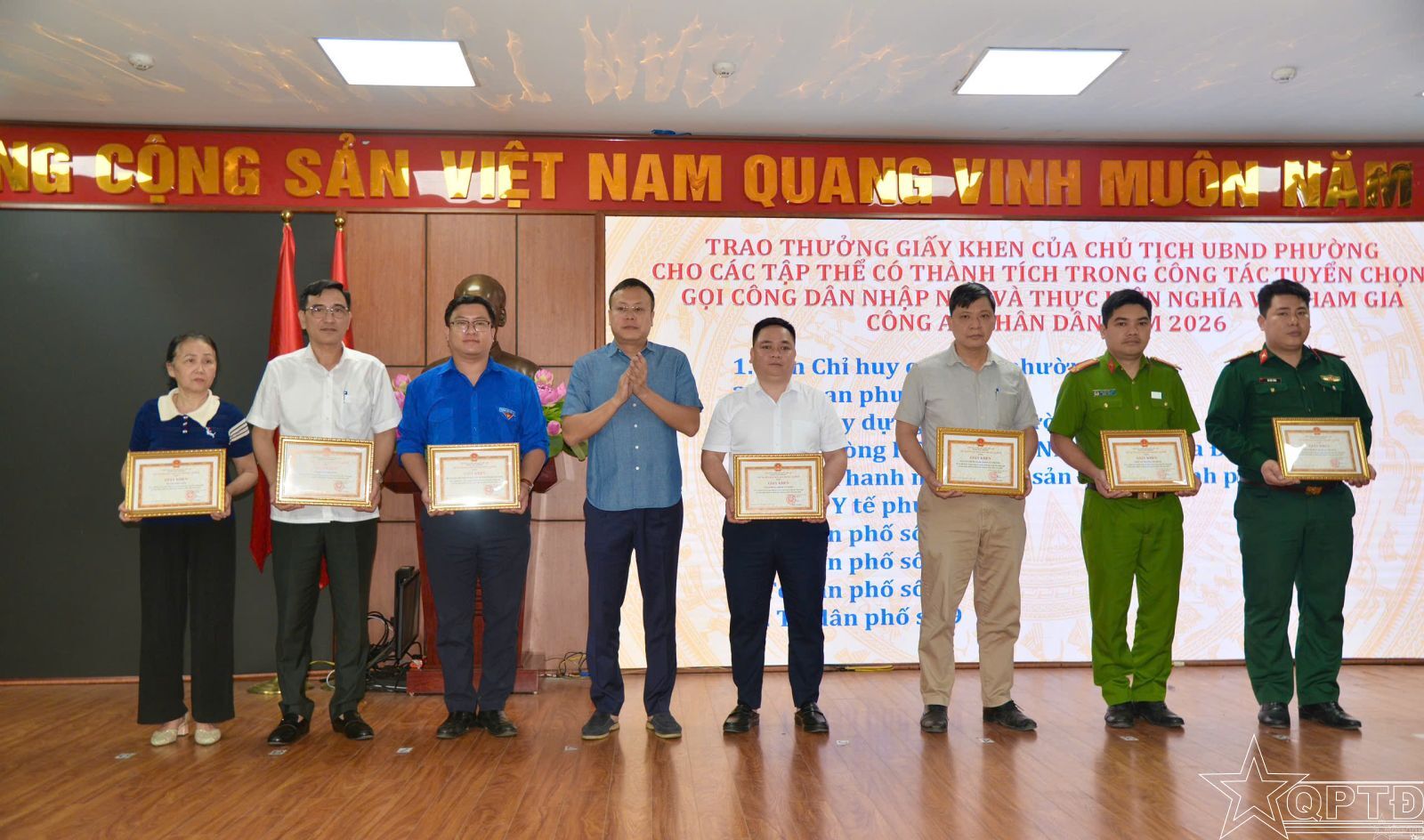 Nhân dịp này, UBND phường Ba Đình đã khen thưởng cho 20 tập thể, 34 cá nhân có thành tích tiêu biểu trong công tác tuyển chọn, gọi công dân nhập ngũ và thực hiện nghĩa vụ tham gia Công an nhân dân năm 2026.