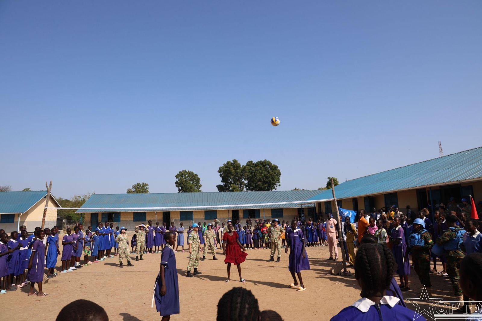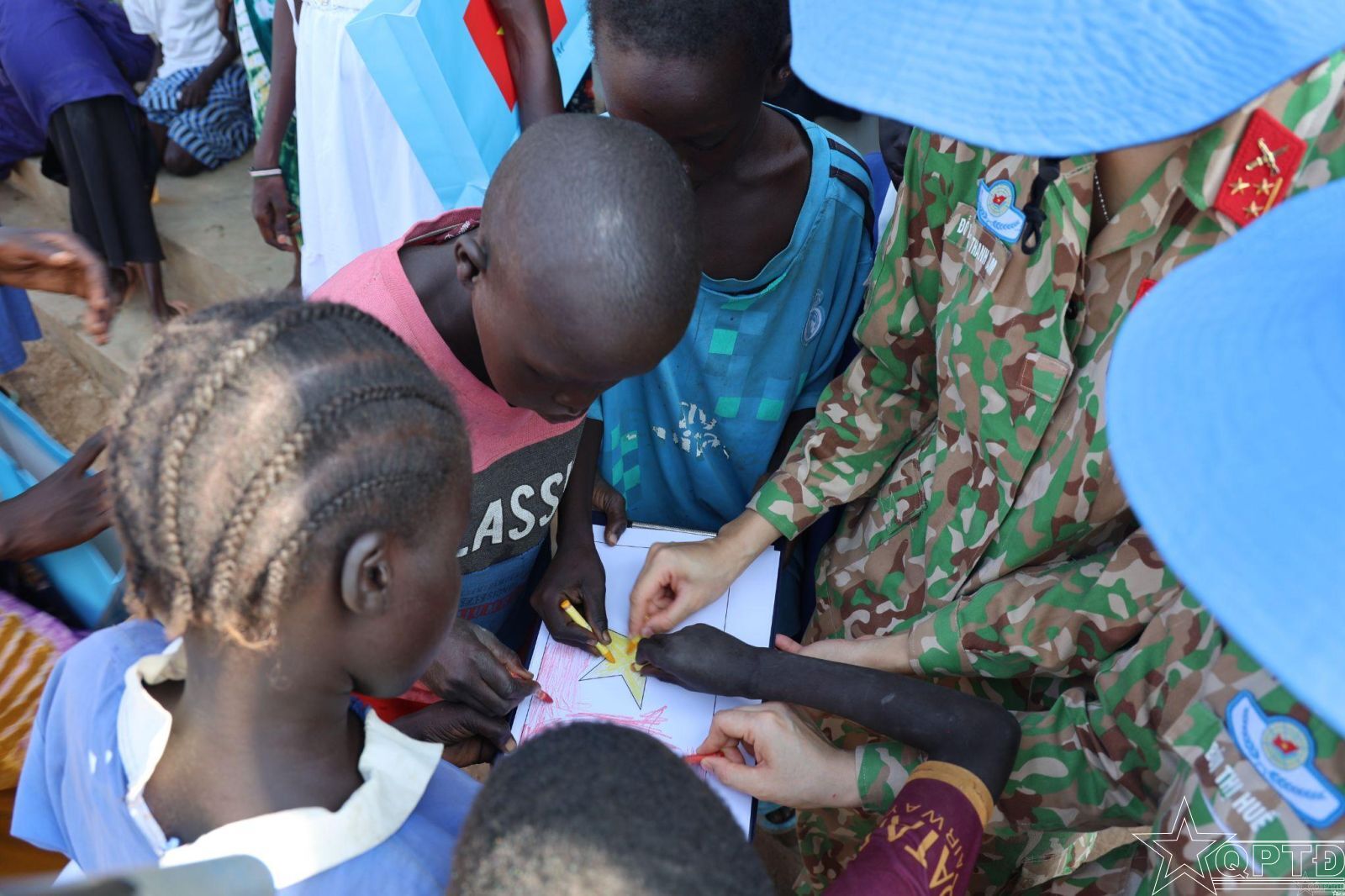 Không gian trường học bỗng chốc bừng sáng với những hoạt động giao lưu thể thao sôi nổi. Bóng chuyền, nhảy dây, đá cầu… trở thành cầu nối đặc biệt, nơi tiếng cười giòn tan của trẻ em Nam Sudan hòa cùng tiếng reo hò cổ vũ của những người lính mũ nồi xanh Việt Nam.