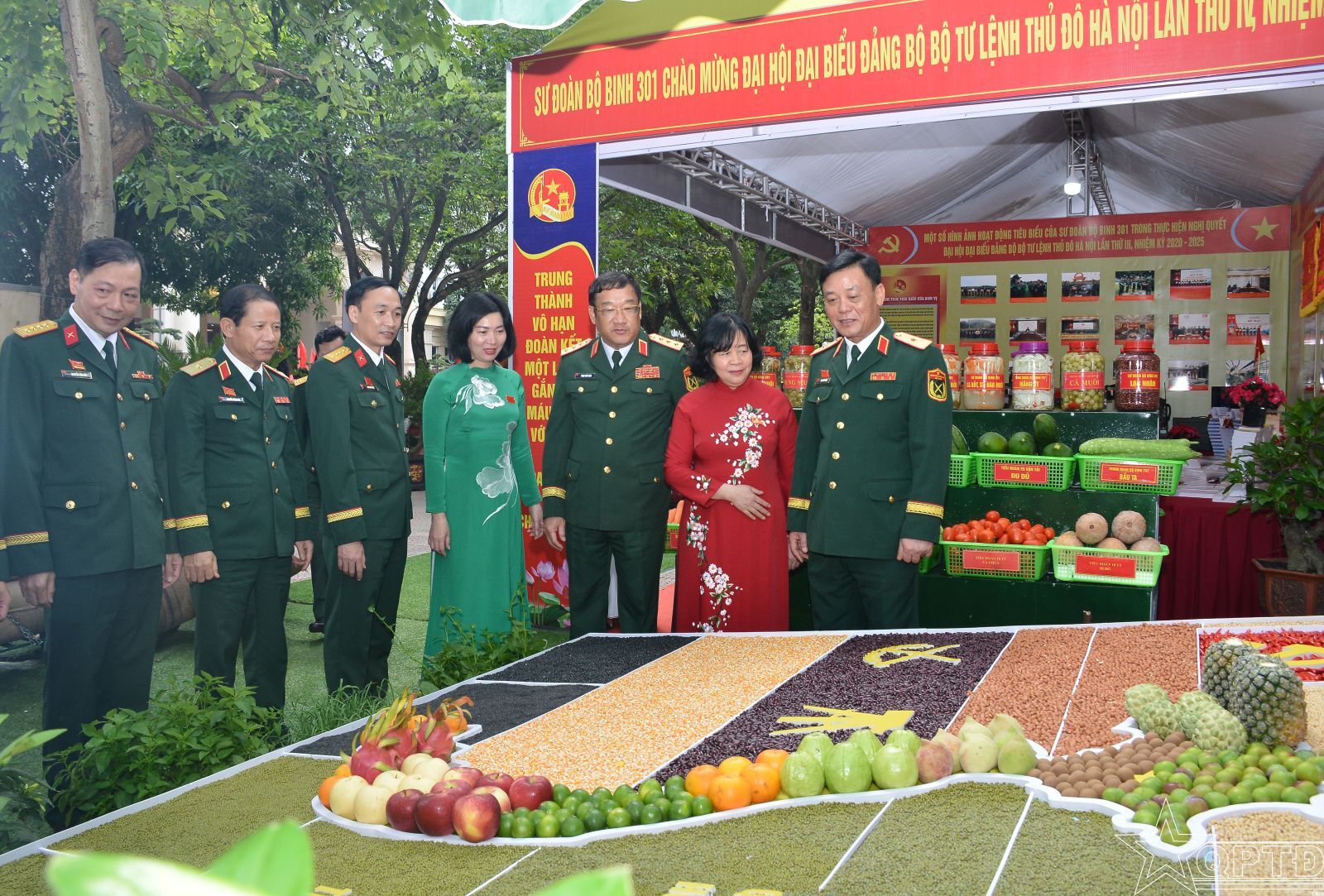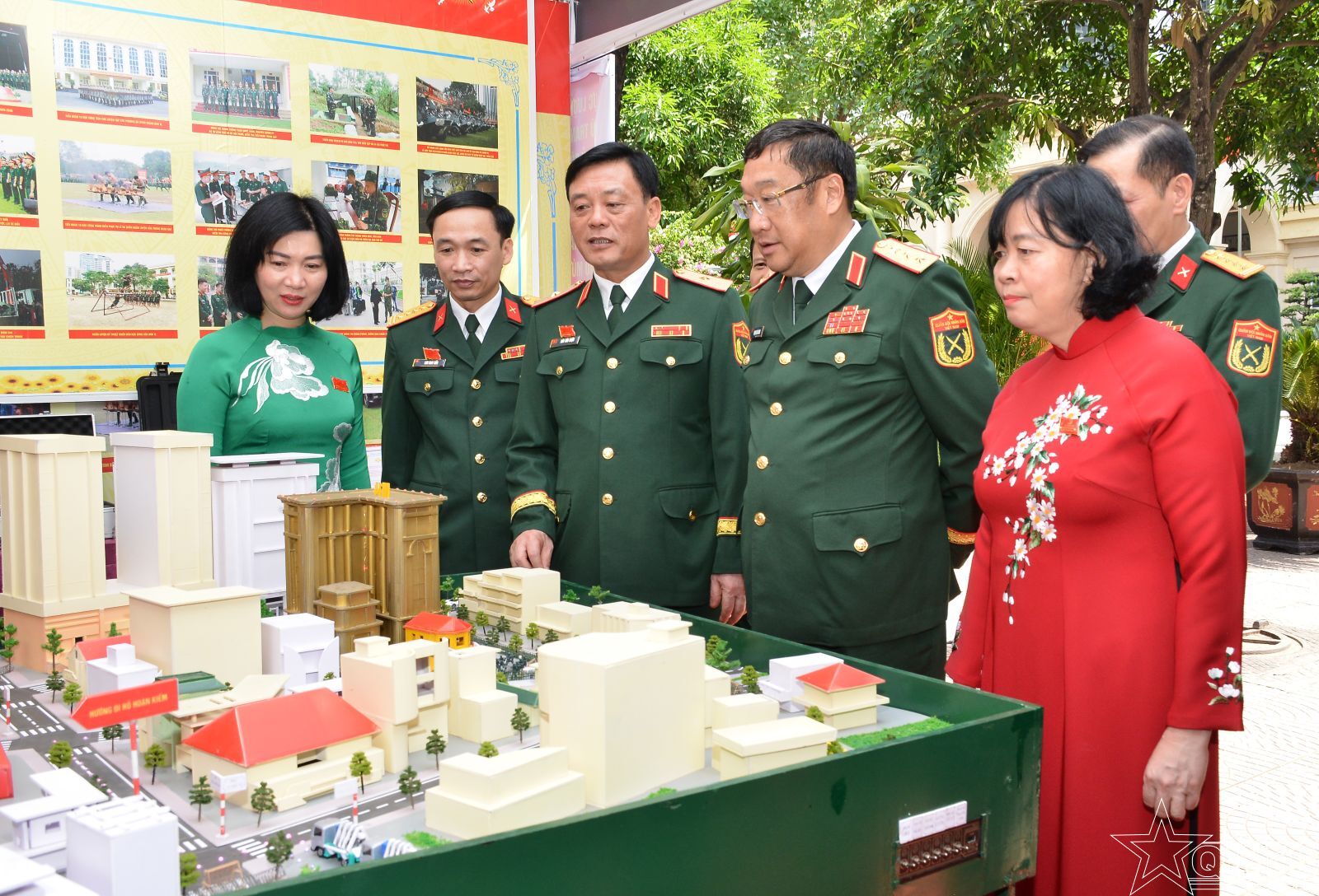 Đồng chí Bùi Thị Minh Hoài, Ủy viên Bộ Chính trị, Bí thư Thành ủy Hà Nội, Bí thư Đảng ủy Bộ Tư lệnh Thủ đô Hà Nội và Thượng tướng Phạm Hoài Nam, Ủy viên Trung ương Đảng, Ủy viên Quân ủy Trung ương, Thứ trưởng Bộ Quốc phòng, cùng các đại biểu tham quan gian trưng bày tại Đại hội.