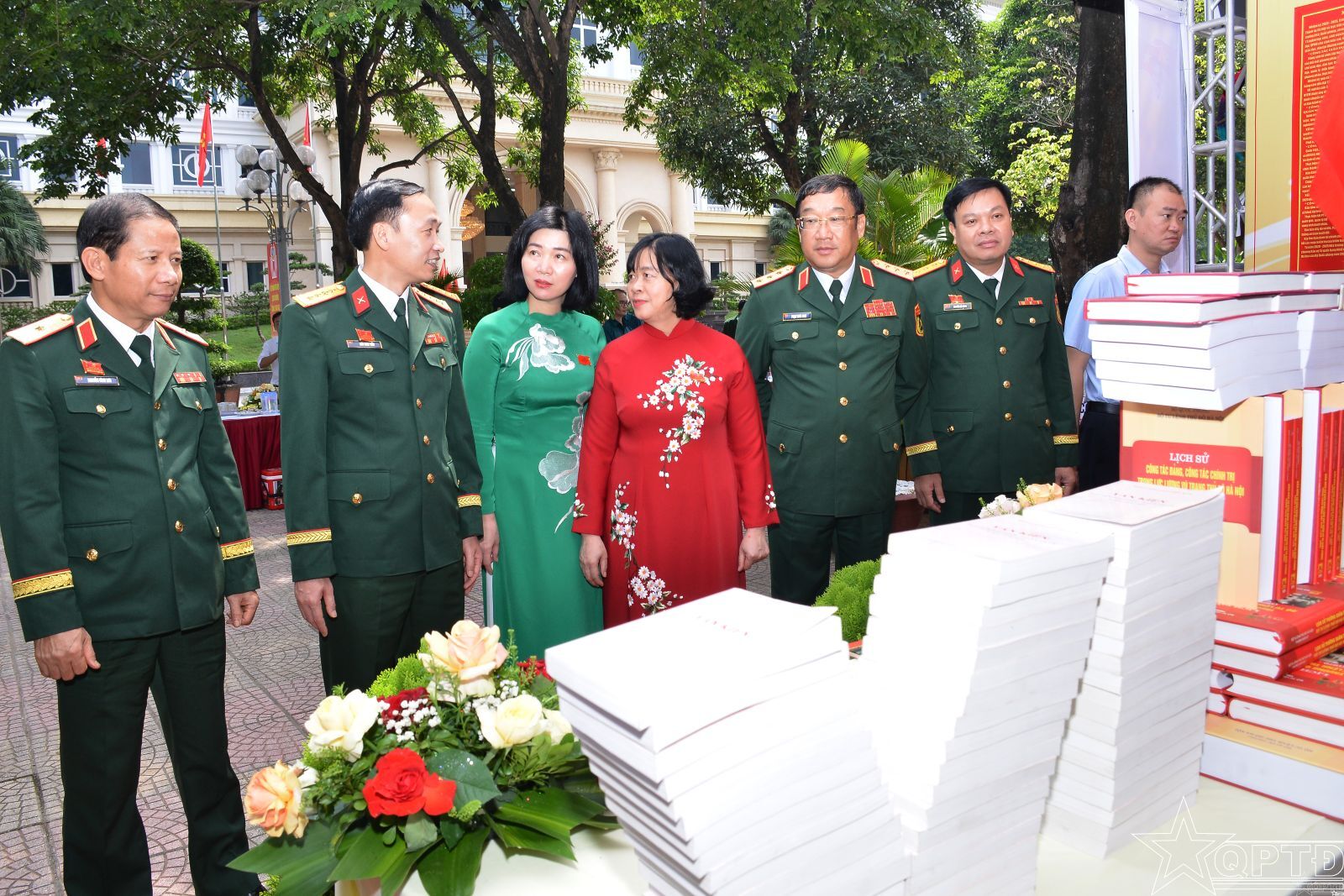 Đồng chí Bùi Thị Minh Hoài, Ủy viên Bộ Chính trị, Bí thư Thành ủy Hà Nội, Bí thư Đảng ủy Bộ Tư lệnh Thủ đô Hà Nội và Thượng tướng Phạm Hoài Nam, Ủy viên Trung ương Đảng, Ủy viên Quân ủy Trung ương, Thứ trưởng Bộ Quốc phòng, cùng các đại biểu tham quan trưng bày sách tại Đại hội.