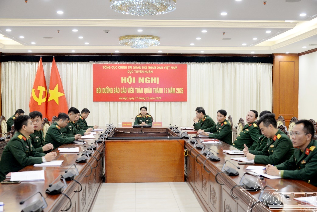QPTĐ-Sáng 17-12, Cục Tuyên huấn, Tổng Cục Chính trị Quân đội nhân dân Việt Nam tổ chức Hội nghị báo cáo viên toàn quân tháng 12 năm 2025 theo hình thức trực tiếp và trực tuyến với 70 điểm cầu trong toàn quân.