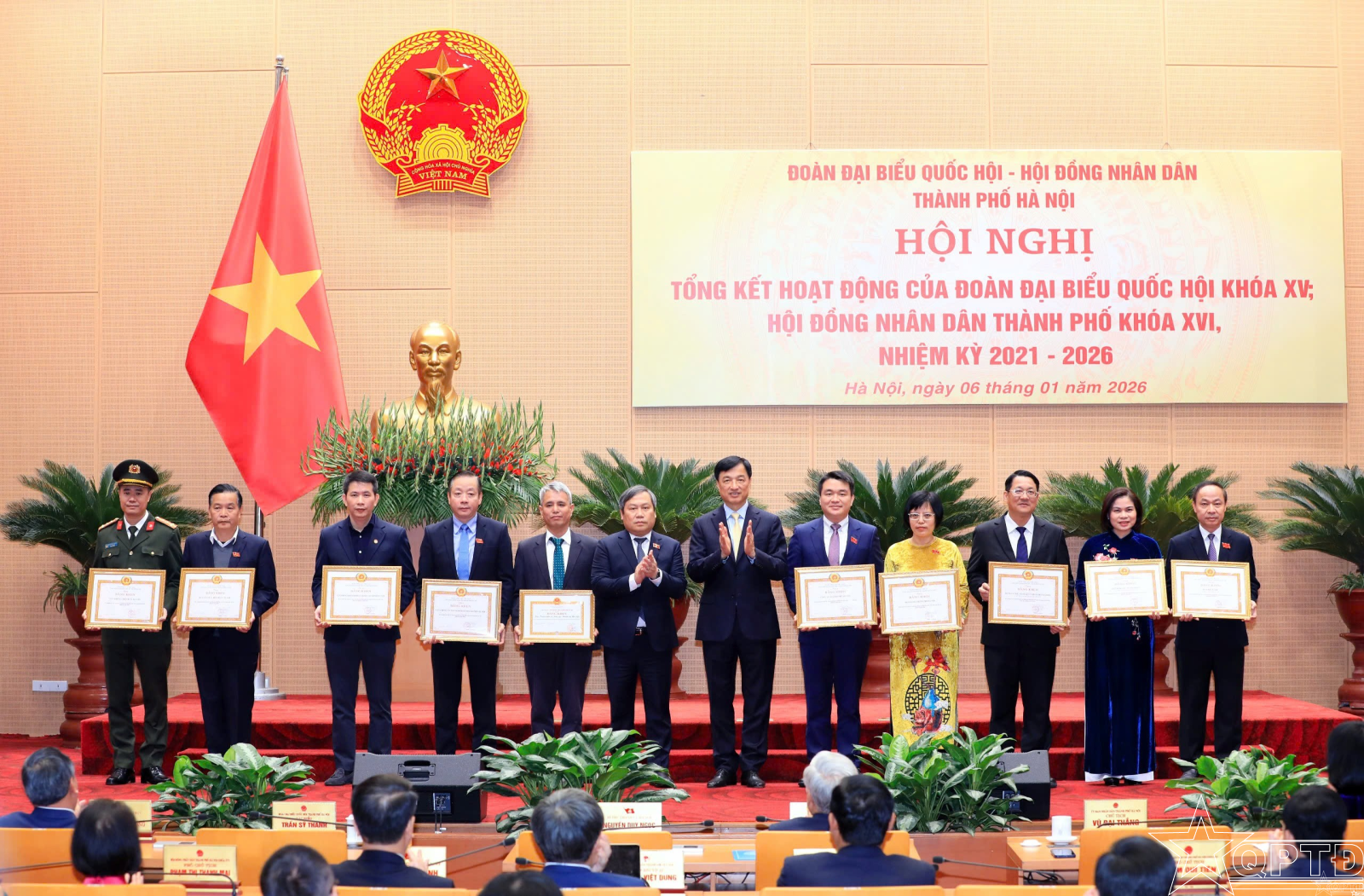 Với những kết quả nổi bật, Ủy ban Thường vụ Quốc hội đã tặng Bằng khen cho 3 tập thể, 7 cá nhân; trao Kỷ niệm chương “Vì sự nghiệp Quốc hội Việt Nam” cho 7 cá nhân. UBND thành phố Hà Nội tặng Kỷ niệm chương “Vì sự nghiệp xây dựng, bảo vệ và phát triển Thủ đô Hà Nội” cho 10 cá nhân. Ban Thường vụ Thành ủy và UBND Thành phố tặng Bằng khen cho 33 tập thể, 216 cá nhân có thành tích xuất sắc trong hoạt động của Đoàn ĐBQH và HĐND Thành phố nhiệm kỳ 2021-2026.
