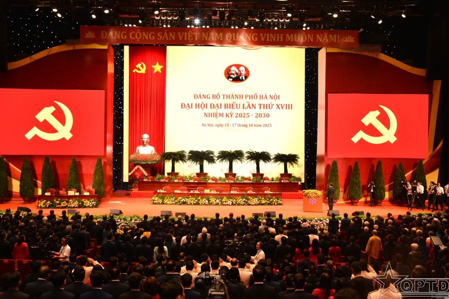 QPTĐ-Sáng 16-10, tại Trung tâm Hội nghị quốc gia, Đảng bộ thành phố Hà Nội đã tổ chức Đại hội đại biểu lần thứ XVIII, nhiệm kỳ 2025-2030.