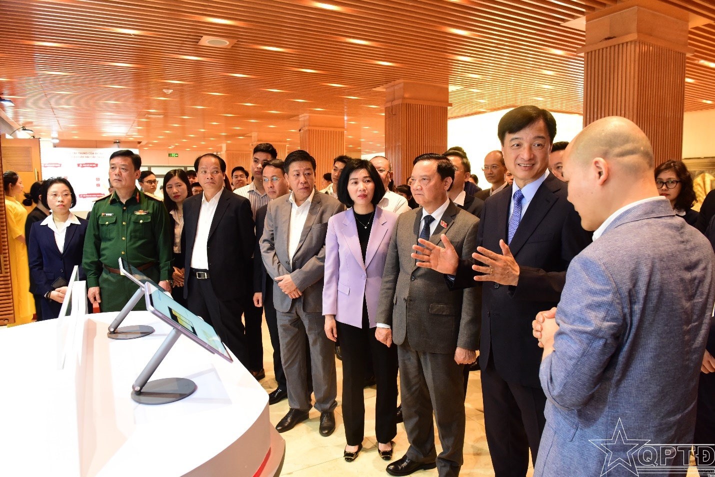 Bí thư Thành ủy Hà Nội Nguyễn Duy Ngọc, Phó Chủ tịch Quốc hội Nguyễn Khắc Định cùng các đại biểu Trung ương, thành phố Hà Nội tham quan không gian chuyển đổi số của HĐND thành phố Hà Nội.