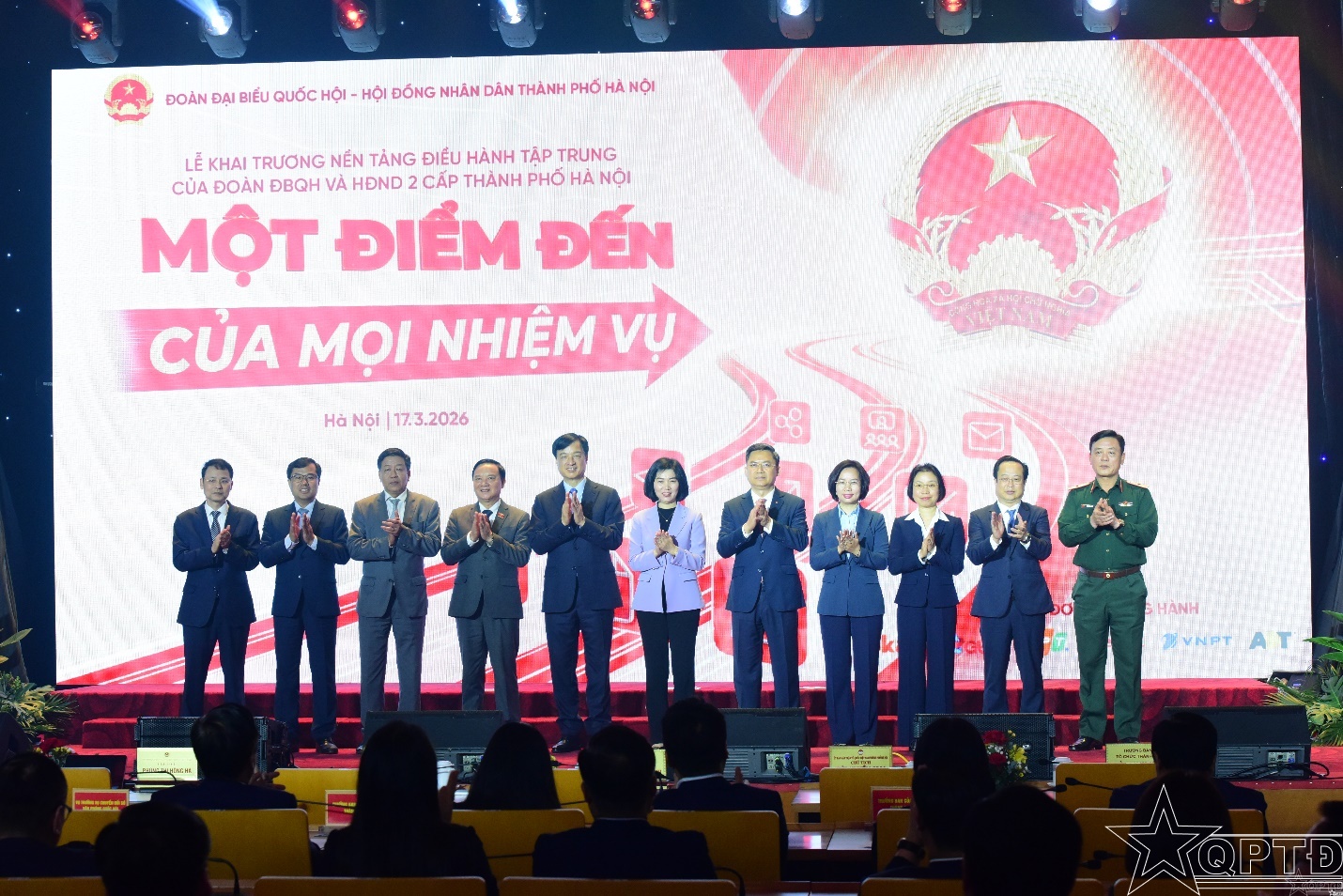 QPTĐ-Sáng 17-3, Đoàn Đại biểu Quốc hội (ĐBQH) và Hội đồng nhân dân (HĐND) TP Hà Nội tổ chức Lễ khai trương Nền tảng Điều hành tập trung với chủ đề “Một điểm đến của mọi nhiệm vụ”. Đây là bước đột phá trong lộ trình chuyển đổi số, nhằm đổi mới phương thức điều hành và nâng cao hiệu lực, hiệu quả hoạt động của cơ quan dân cử Thủ đô.