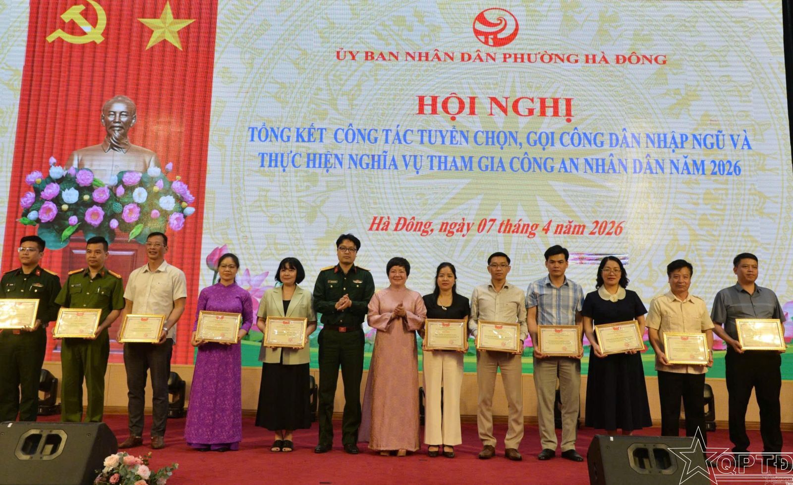 QPTĐ-Chiều 7-4, UBND phường Hà Đông tổ chức hội nghị tổng kết công tác tuyển chọn, gọi công dân nhập ngũ và thực hiện nghĩa vụ tham gia Công an nhân dân năm 2026, triển khai nhiệm vụ năm 2027.