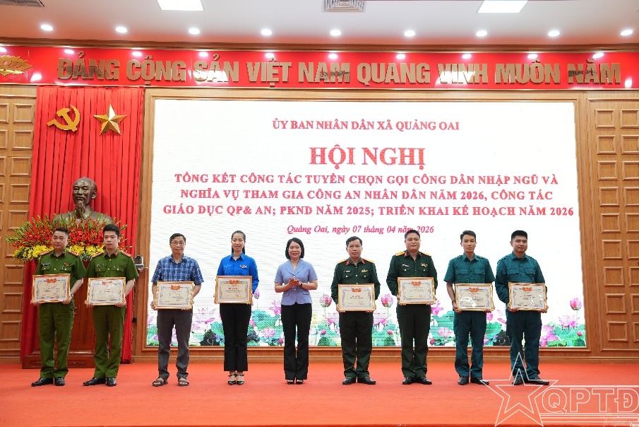 Nhân dịp này, UBND xã Quảng Oai đã khen thưởng 12 tập thể và 16 cá nhân có thành tích xuất sắc trong công tác tuyển quân năm 2026.
