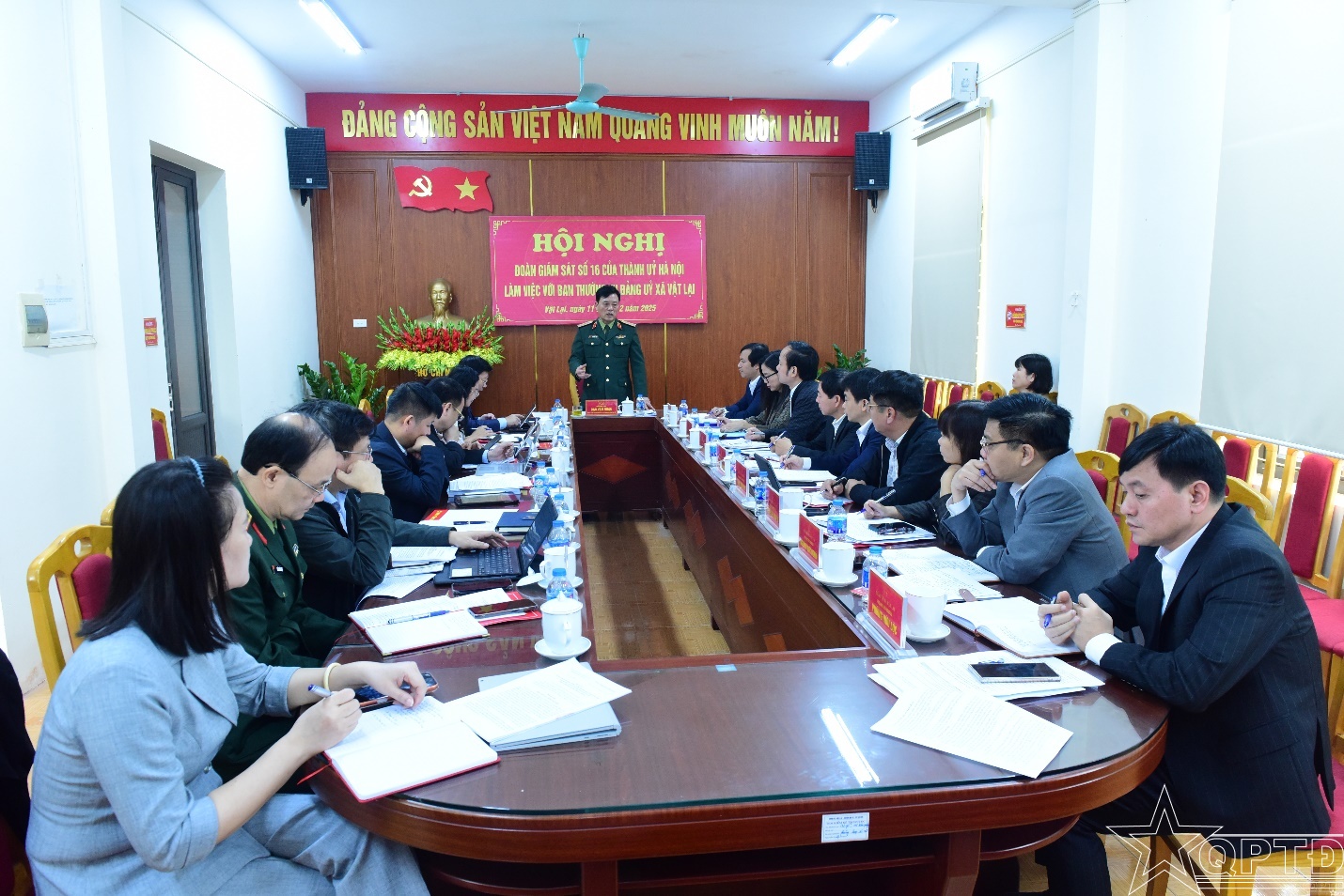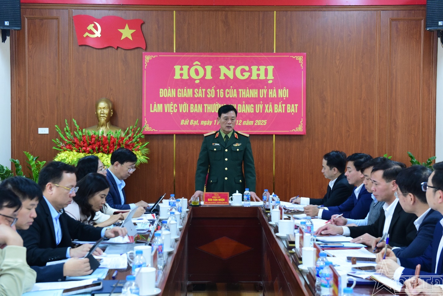 Phát biểu kết luận, đồng chí Thiếu tướng Đào Văn Nhận, Trưởng đoàn Giám sát số 16, ghi nhận và đánh giá cao tinh thần làm việc khẩn trương, nghiêm túc và những ý kiến góp ý dân chủ, thẳng thắn, mang tính khoa học của đại diện các sở, ban, ngành Thành phố. Đồng thời, ghi nhận Đảng ủy xã Vật Lại, xã Bất Bạt đã xây dựng báo cáo tổng hợp sát tình hình thực tế địa bàn với nhiều nhiệm vụ theo các nội dung giám sát, kiểm điểm gắn với trách nhiệm của người đứng đầu. Trong bối cảnh Thành phố đang đẩy mạnh phân cấp, phân quyền, xã cần phát huy mạnh mẽ hơn nữa tính chủ động, bản lĩnh của cấp cơ sở trong xử lý công việc; chủ động tháo gỡ khó khăn, nâng cao hiệu quả quản trị và chất lượng phục vụ người dân.