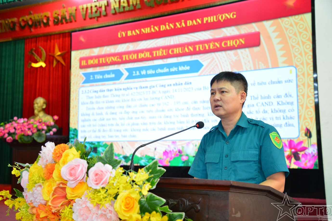 Phó Chủ tịch UBND xã nhấn mạnh: Công tác tuyển quân là một công tác đặc biệt quan trọng nhằm cung cấp lực lượng cho các đơn vị Quân đội, Công an làm nhiệm vụ xây dựng và bảo vệ Tổ quốc. Thực hiện tốt công tác này là đã góp phần xây dựng lực lượng Quân đội và Công an ngày càng vững mạnh, đáp ứng yêu cầu nhiệm vụ trong tình hình mới. Vì vậy, Phó Chủ tịch UBND xã Đan Phượng yêu cầu: Các cơ quan, ban, ngành của xã, đặc biệt là lực lượng quân sự và công an cần tiếp tục quán triệt đầy đủ, kịp thời các văn bản lãnh đạo, chỉ đạo của cấp trên về công tác tuyển quân. Trên cơ sở đó kịp thời tham mưu với Đảng ủy, UBND xã lãnh đạo, chỉ đạo; đồng thời phối hợp chặt chẽ làm tốt công tác tuyên truyền, phổ biến, giáo dục sâu rộng trong toàn Đảng bộ và nhân dân, đặc biệt đối với thanh niên trong độ tuổi nhập ngũ về Luật Nghĩa vụ quân sự, Luật Công an nhân dân; nâng cao nhận thức, trách nhiệm, cổ vũ khích lệ, động viên thanh niên hăng hái viết đơn tình nguyện nhập ngũ. Công an xã, các cơ quan liên quan, các tổ dân phố, thôn, đơn vị tiếp tục thực hiện tốt việc rà soát, xét duyệt, kết luận tiêu chuẩn chính trị, trình độ văn hóa, bảo đảm chất lượng, đúng người, đúng quy định. Việc bình xét, gọi công dân tham gia sơ tuyển, khám tuyển nghĩa vụ quân sự đảm bảo chặt chẽ, thực hiện niêm yết công khai các loại danh sách theo đúng quy định. Phó Chủ tịch UBND xã Đan Phượng cũng yêu cầu Hội đồng Nghĩa vụ quân sự xã tổ chức hiệp đồng chặt chẽ với Trạm Y tế xã để tổ chức sơ tuyển sức khỏe nghĩa vụ quân sự, lựa chọn công dân có đủ điều kiện, bảo đảm 100% thanh niên của xã giao cho các đơn vị Quân đội, Công an đạt chất lượng tốt nhất trên mọi phương diện.