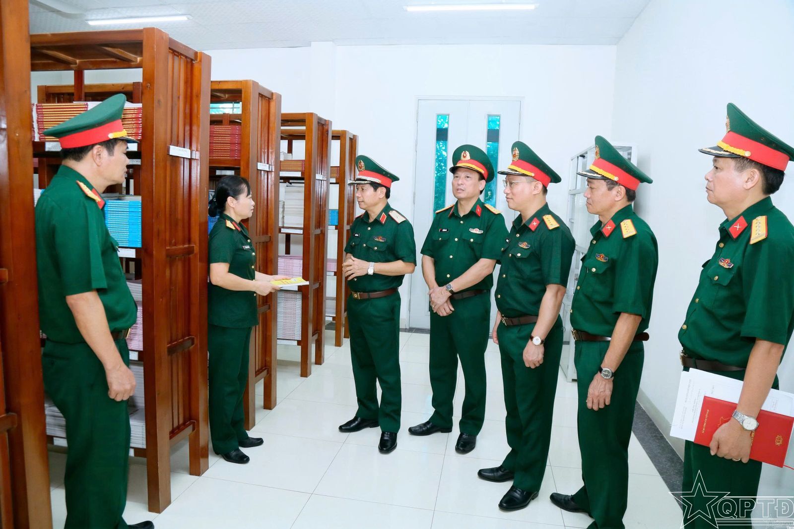 Thủ trưởng Bộ Tư lệnh Thủ đô kiểm tra thư viện Trường Quân sự . (Ảnh: Nguyễn Tú)