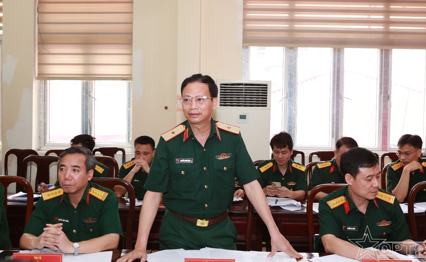 Thiếu tướng Nguyễn Đình Thạo, Phó Tư lệnh kiêm Tham mưu trưởng Bộ Tư lệnh Thủ đô Hà Nội phát biểu tại hội nghị.