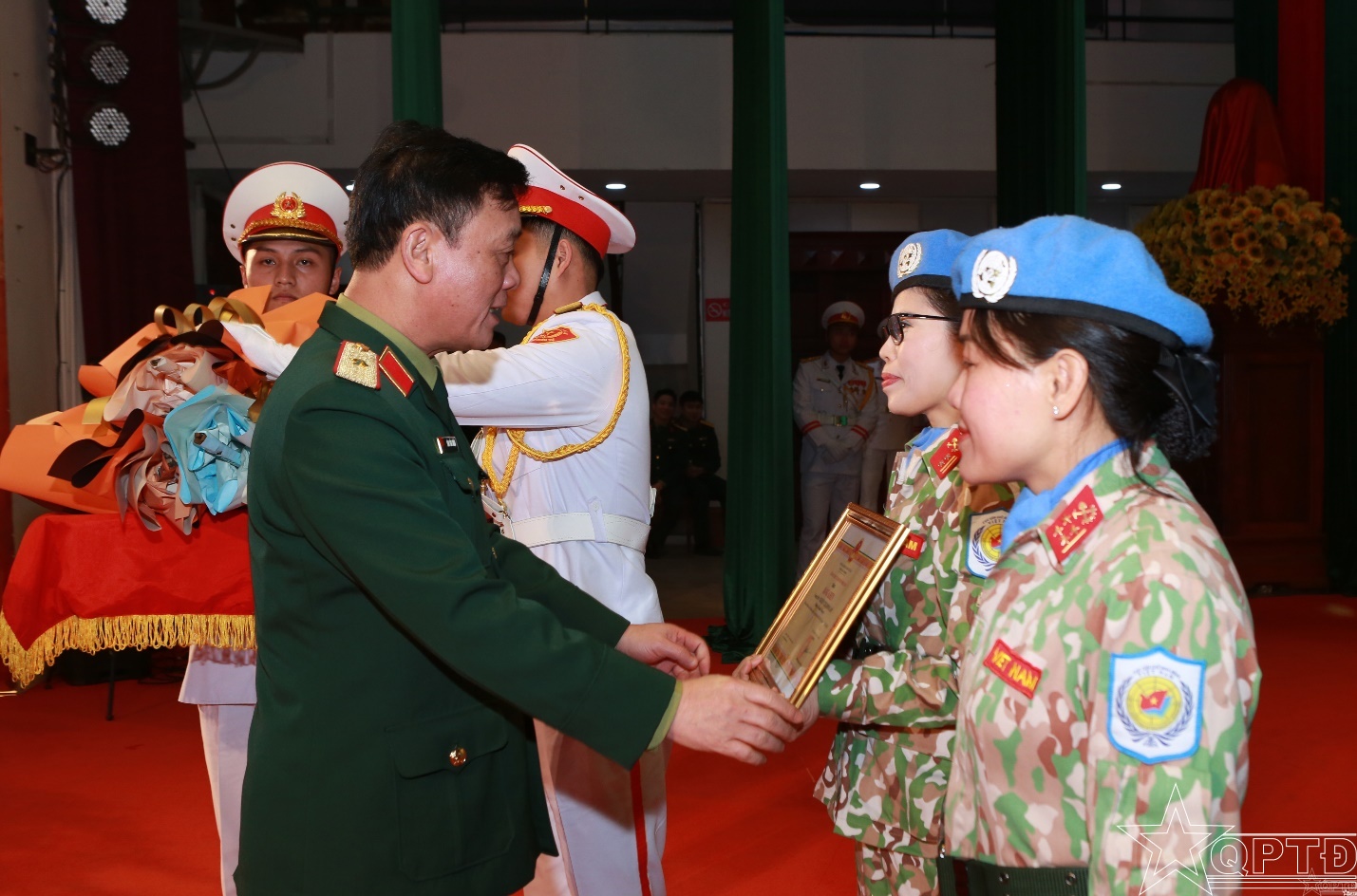 Tặng Bằng khen cho các đồng chí hoàn thành nhiệm vụ gìn giữ hoà bình của Liên hợp quốc.