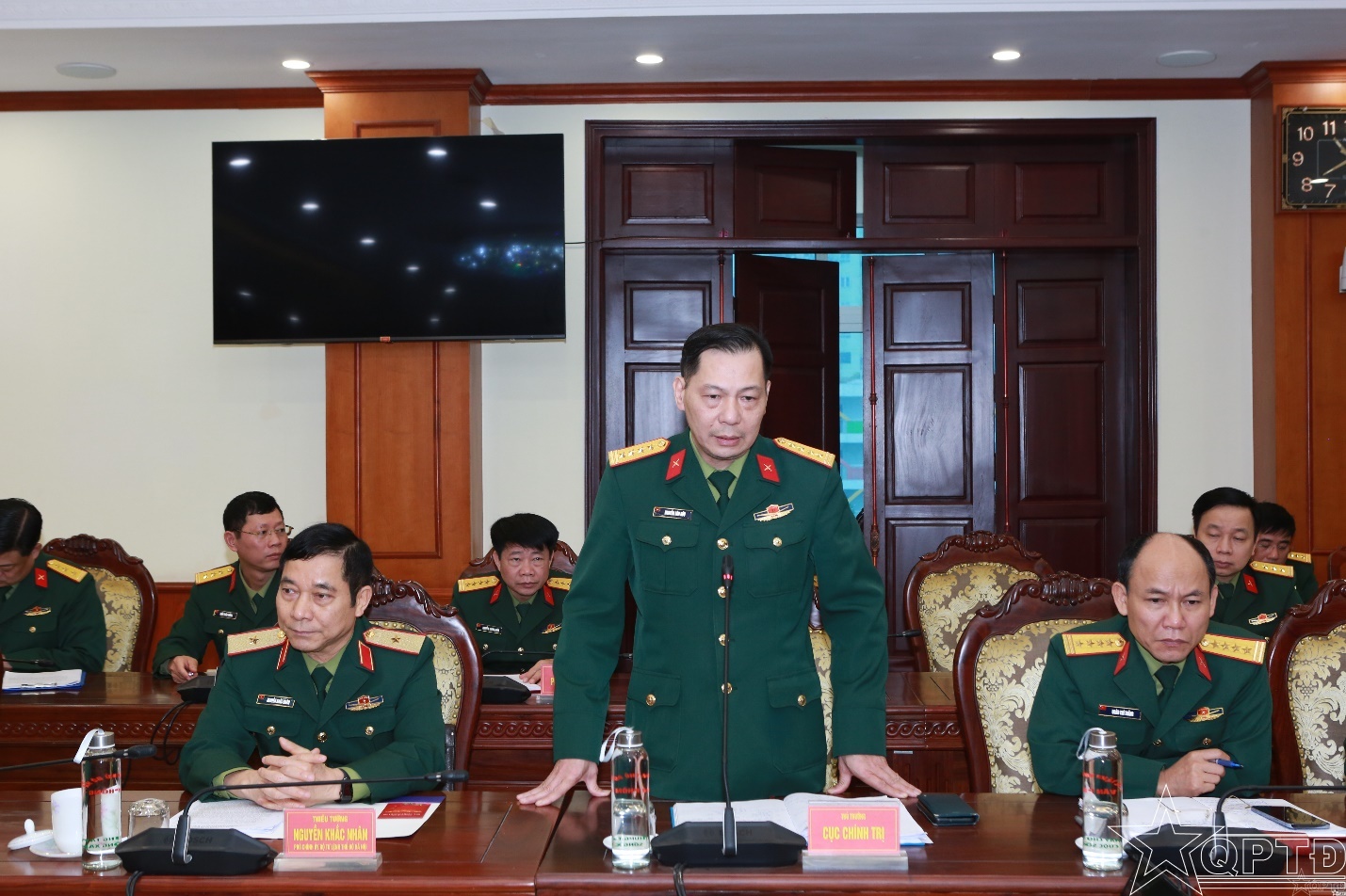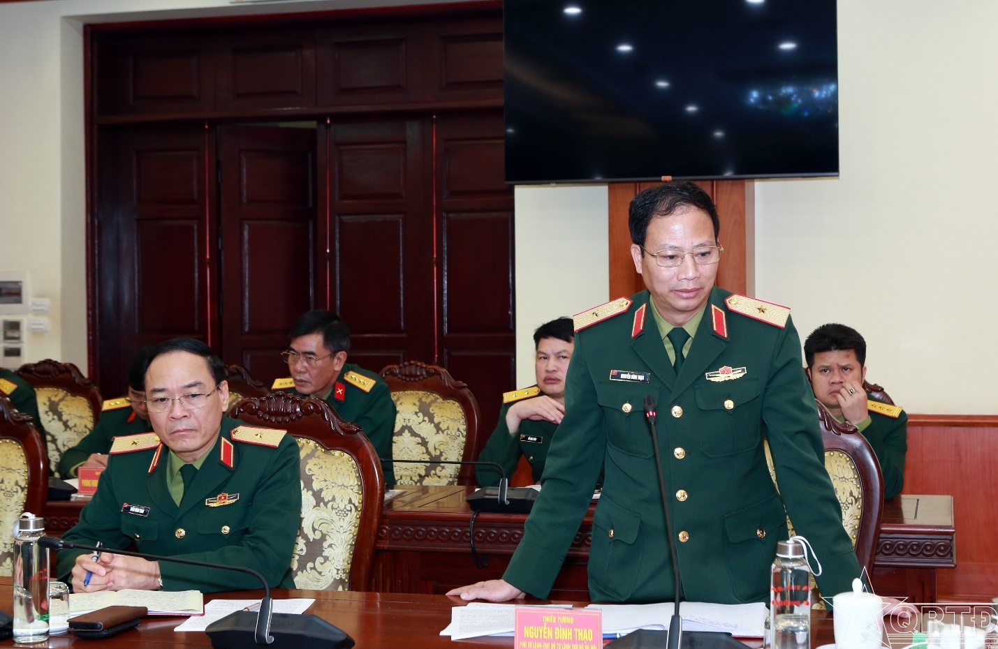 Thiếu tướng Nguyễn Đình Thạo, Phó Tư lệnh kiêm Tham mưu trưởng Bộ Tư lệnh Thủ đô Hà Nội phát biểu tại hội nghị.