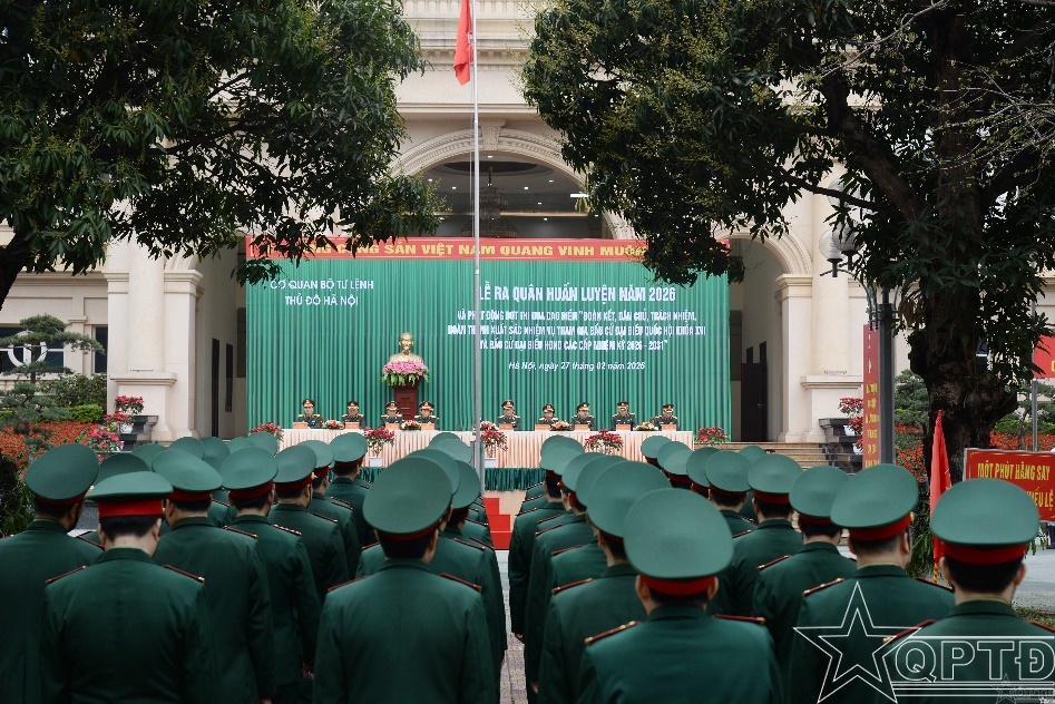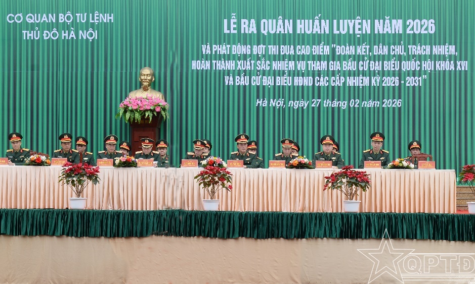 QPTĐ-Sáng 27-2, Cơ quan Bộ Tư lệnh Thủ đô Hà Nội đã tổ chức Lễ ra quân huấn luyện năm 2026 và phát động đợt thi đua cao điểm “Đoàn kết, dân chủ, trách nhiệm, hoàn thành xuất sắc nhiệm vụ tham gia bầu cử đại biểu Quốc hội khóa XVI và bầu cử đại biểu Hội đồng nhân dân các cấp nhiệm kỳ 2026-2031”. Dự Lễ ra quân huấn luyện có Thiếu tướng Đào Văn Nhận, Ủy viên Ban Thường vụ Thành ủy, Tư lệnh Bộ Tư lệnh Thủ đô Hà Nội; Thiếu tướng Lưu Nam Tiến, Thành ủy viên, Chính ủy Bộ Tư lệnh Thủ đô Hà Nội.
