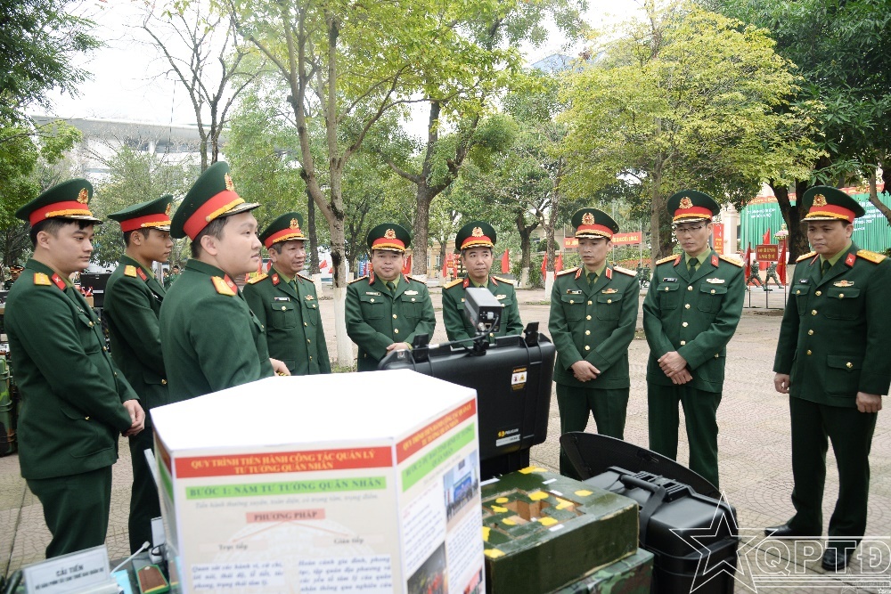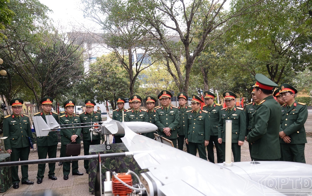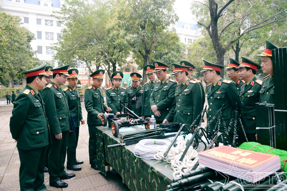 Thủ trưởng Bộ Tư lệnh tham quan khu trưng bày mô hình học cụ của các đơn vị.