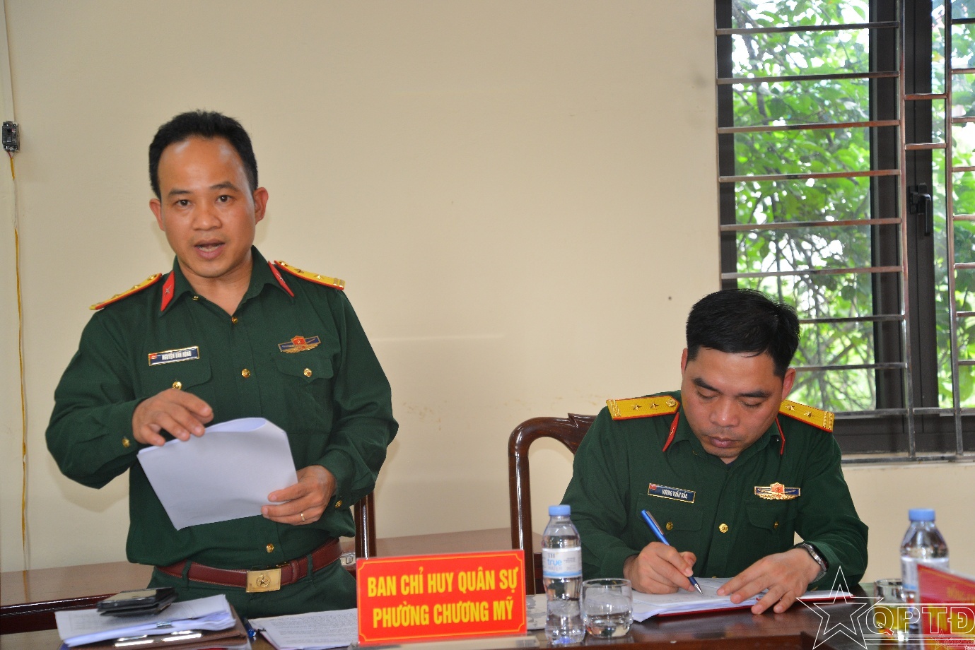 Đại diện Ban CHQS phường Chương Mỹ trình bày quy chế hoạt động Khối thi đua số 13.