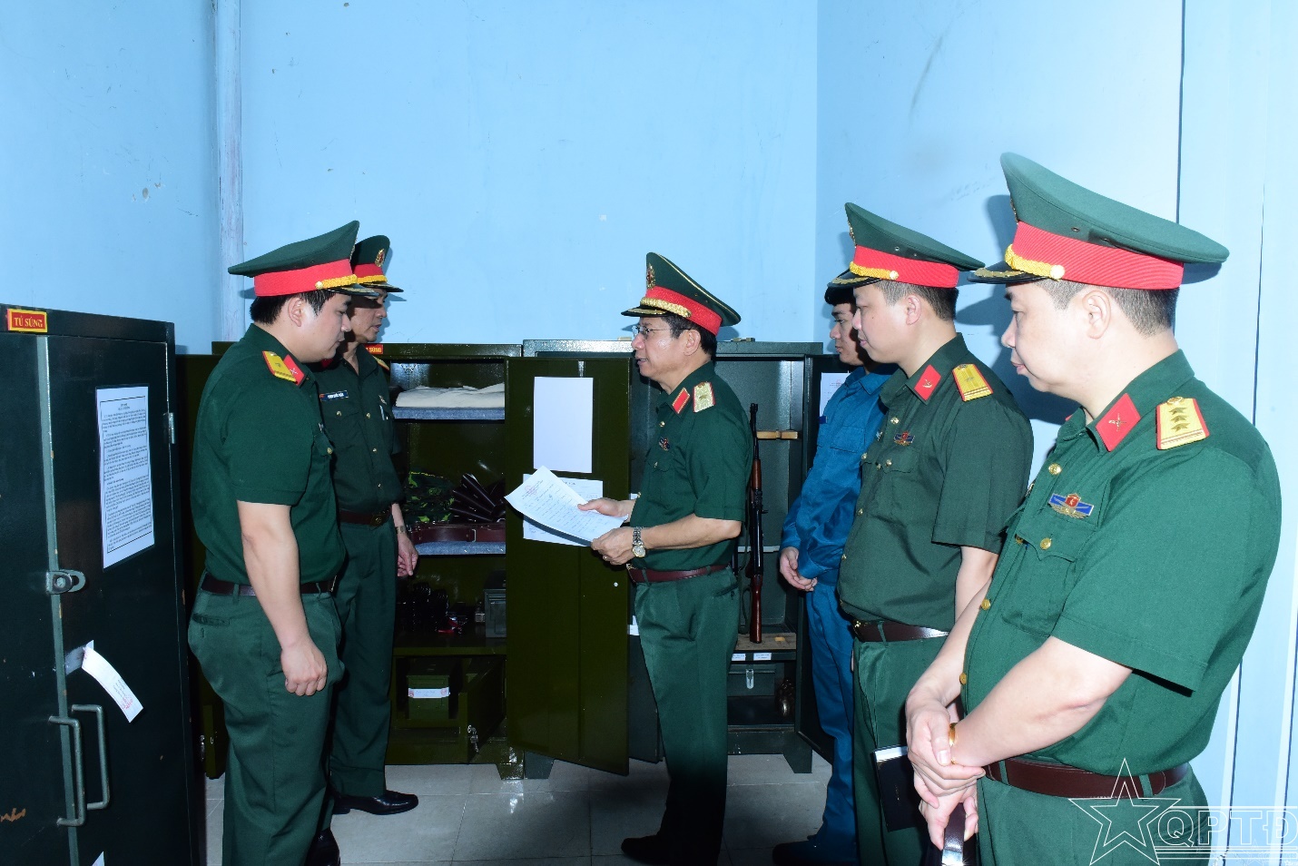 Nội dung kiểm tra tập trung vào tình hình quản lý khai thác, sử dụng, bảo quản vũ khí, trang bị kỹ thuật và hệ thống kho tàng; bảo đảm hậu cần thường xuyên, công tác chăm sóc nuôi dưỡng bộ đội và lực lượng dân quân thường trực, quản lý và sử dụng cơ sở vật chất hậu cần; sắp xếp biển bảng, xây dựng doanh trại chính quy.
