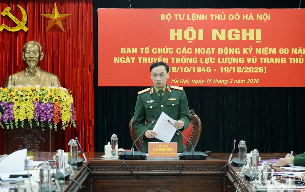 QPTĐ-Sáng 11-3, Bộ Tư lệnh Thủ đô Hà Nội tổ chức Hội nghị Ban tổ chức các hoạt động kỷ niệm 80 năm Ngày truyền thống lực lượng vũ trang Thủ đô (19/10/1946-19/10/2026). Thiếu tướng Lưu Nam Tiến, Chính ủy Bộ Tư lệnh Thủ đô Hà Nội chủ trì hội nghị.