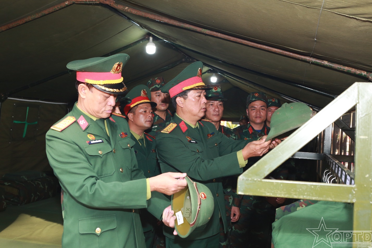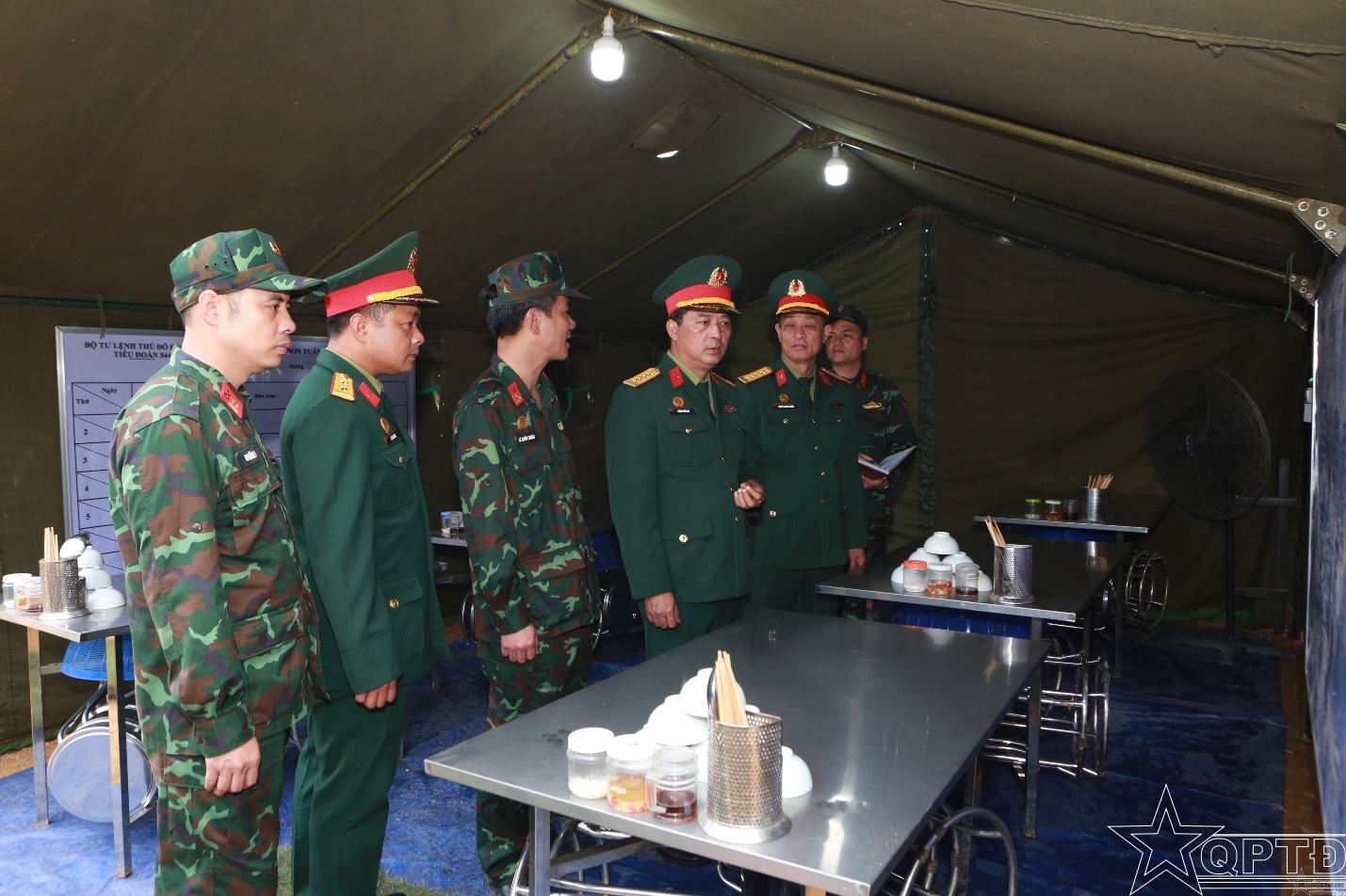 Thủ trưởng Binh chủng Công binh tham quan vị trí ăn ở của lực lượng Bộ Tư lệnh Thủ đô Hà Nội.