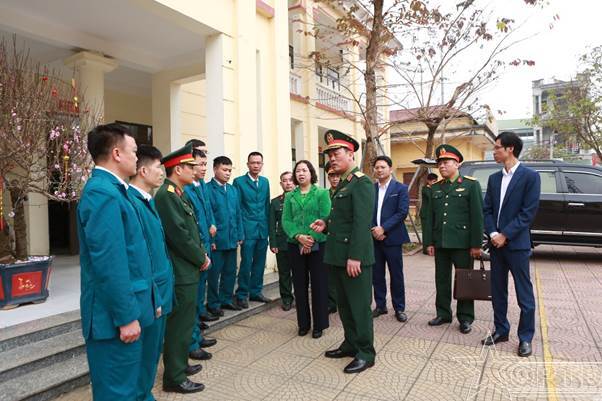 Thiếu tướng Đào Văn Nhận động viên, thăm hỏi cán bộ, chiến sĩ Ban CHQS xã Cổ Đô.