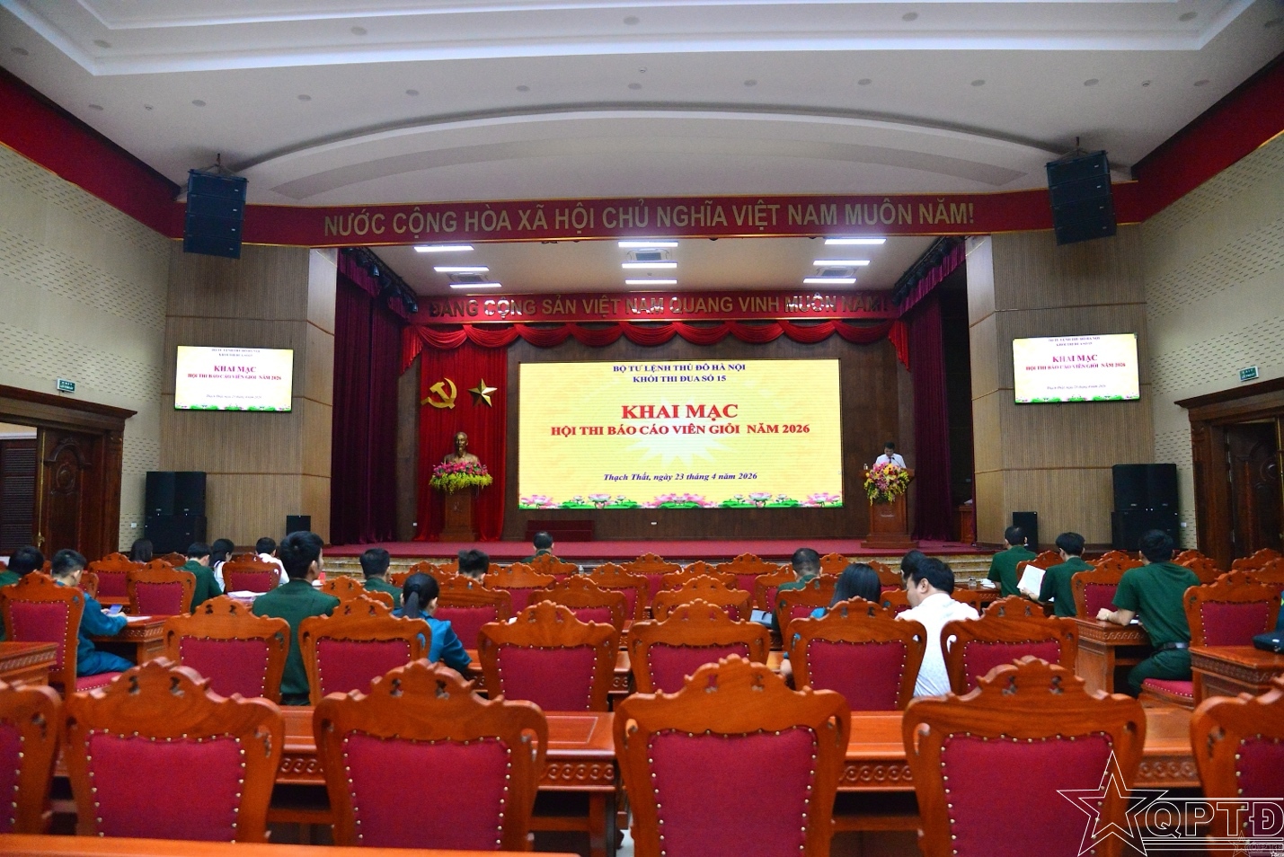 QPTĐ-Sáng 23-4, Khối thi đua số 5 Bộ Tư lệnh Thủ đô Hà Nội đã tổ chức Hội thi Báo cáo viên giỏi với sự tham gia của 18 thí sinh.