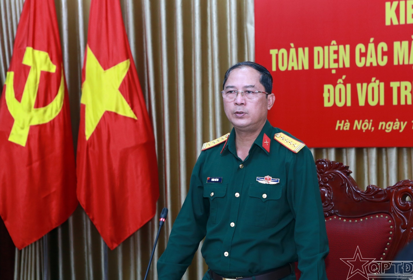 Đại tá Phùng Chí Cao, Phó Tham mưu trưởng, Bộ Tư lệnh Thủ đô Hà Nội kết luận sơ bộ buổi kiểm tra.