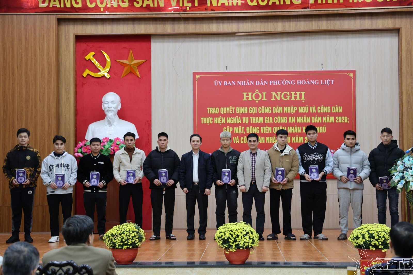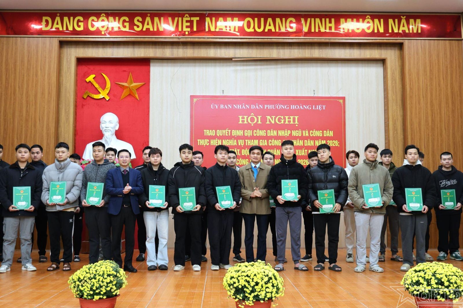 QPTĐ-Chiều 9/2, Đảng ủy, HĐND, UBND phường Hoàng Liệt đã tổ chức Hội nghị trao quyết định gọi công dân nhập ngũ và tham gia nghĩa vụ Công an nhân dân năm 2026; gặp mặt, động viên quân nhân xuất ngũ và công dân lên đường nhập ngũ năm 2026.
