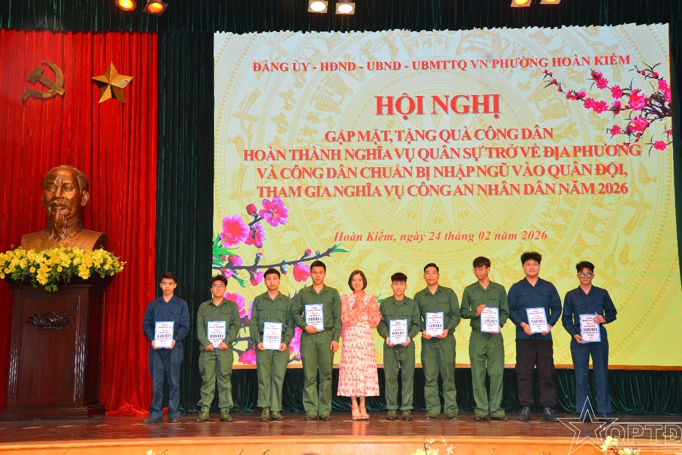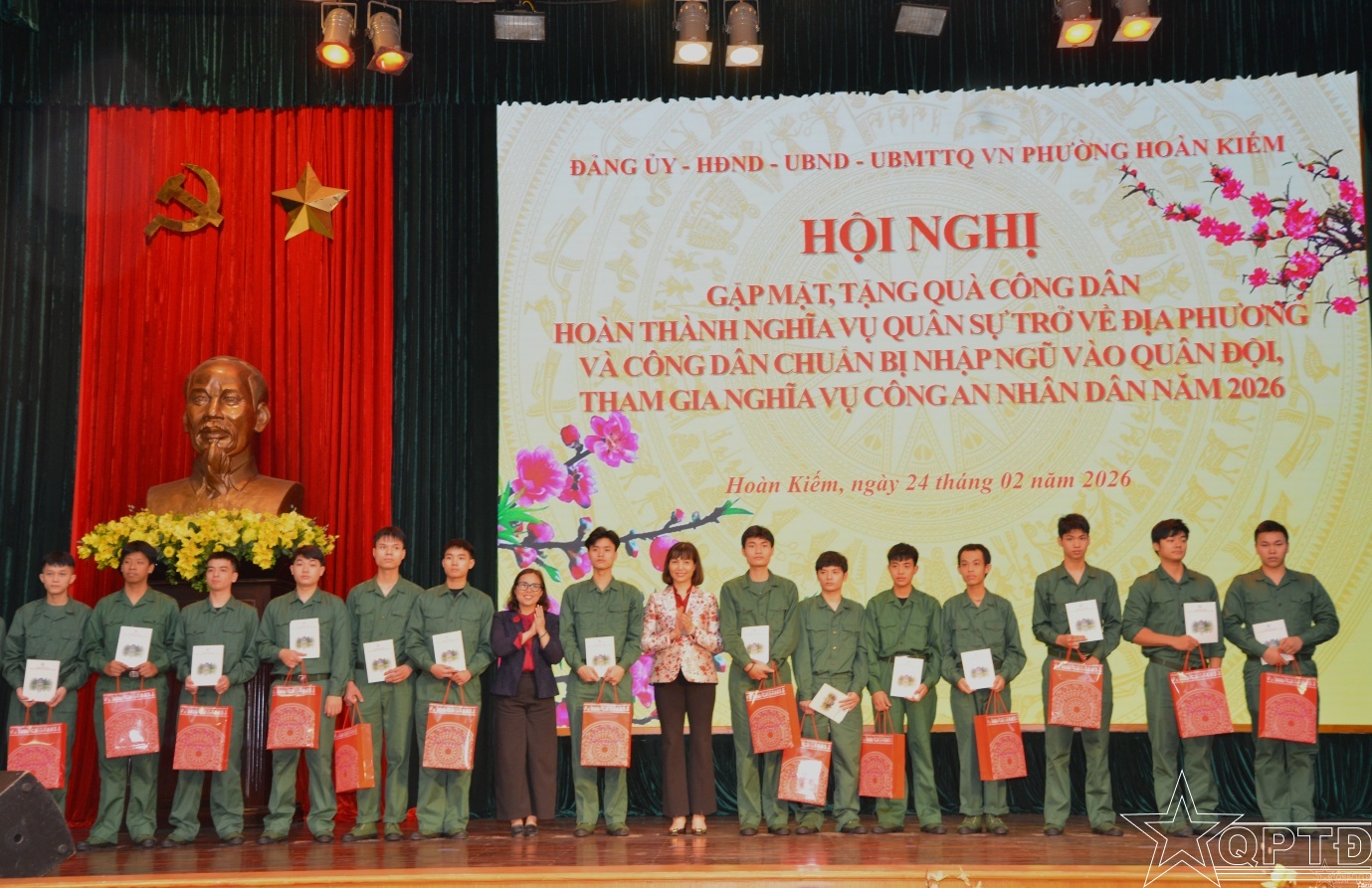 QPTĐ-Chiều 24/2, phường Hoàn Kiếm tổ chức gặp mặt, động viên, tặng quà các quân nhân hoàn thành nghĩa vụ quân sự trở về địa phương và công dân chuẩn bị lên đường nhập ngũ, thực hiện nghĩa vụ tham gia Công an nhân dân năm 2026.