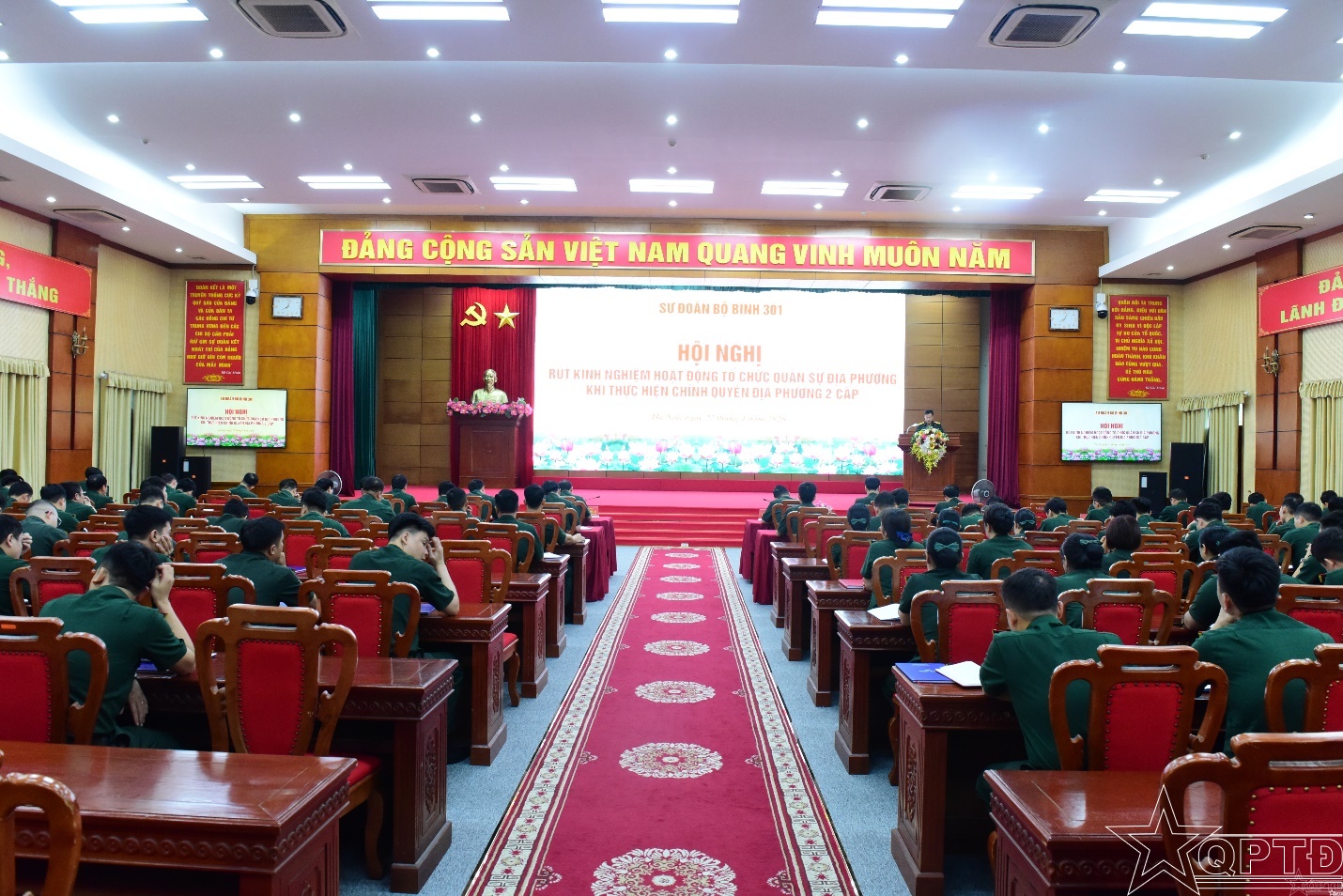 QPTĐ-Sáng 22/4, Sư đoàn Bộ binh 301 đã tổ chức Hội nghị rút kinh nghiệm hoạt động tổ chức quân sự địa phương khi thực hiện chính quyền địa phương hai cấp. Thiếu tướng Nguyễn Đình Lưu, Phó Tư lệnh Bộ Tư lệnh Thủ đô Hà Nội dự và phát biểu chỉ đạo hội nghị.