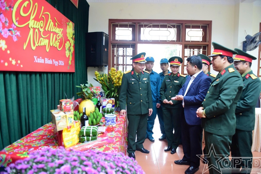Thủ trưởng Cục Chính trị tham quan Phòng đón Xuân của Ban CHQS phường Hà Đông.