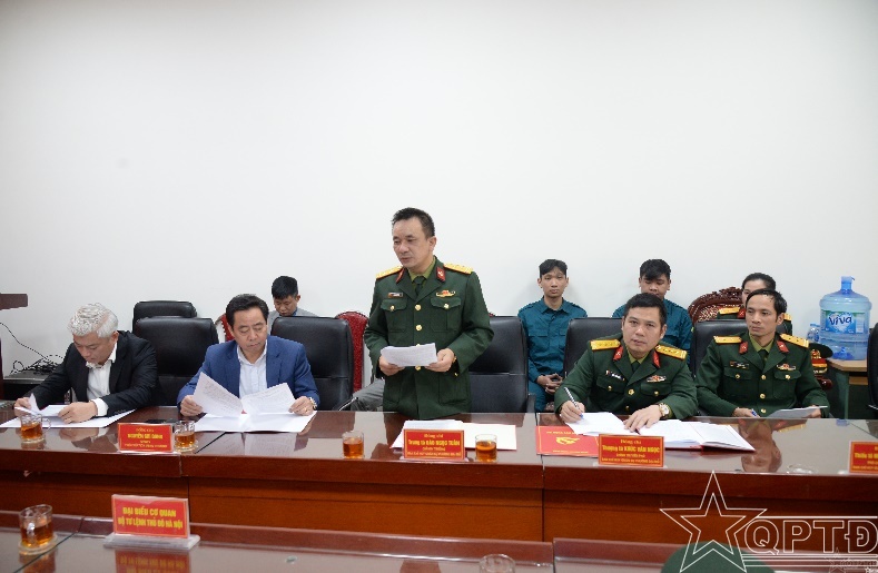 Đại diện Ban CHQS phường Đại Mỗ báo cáo tình hình đơn vị.