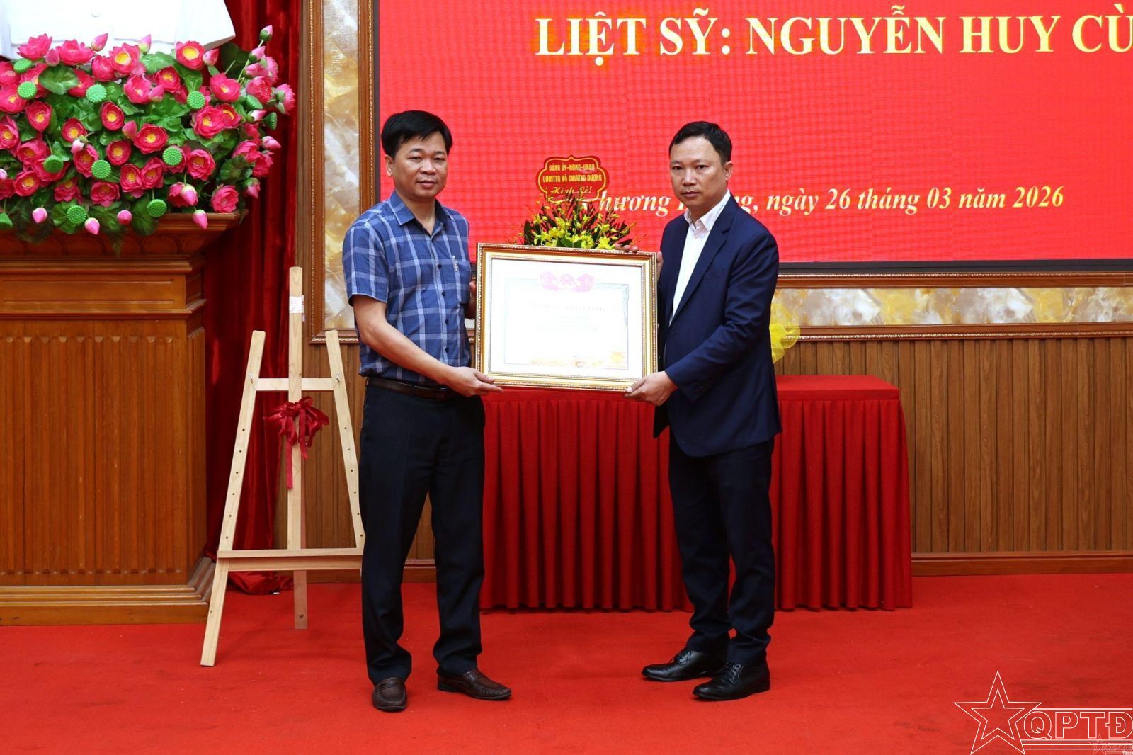 QPTĐ-Sáng 26/3, xã Chương Dương đã tổ chức Lễ trao Bằng Tổ quốc ghi công liệt sĩ Nguyễn Huy Cừ. Đây là sự ghi nhận và tôn vinh của Đảng, Nhà nước và Nhân dân đối với những người đã hy sinh vì nền độc lập, tự do của dân tộc.