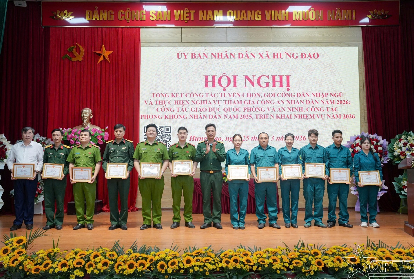 QPTĐ-Sáng 25/3/2026, UBND xã Hưng Đạo tổ chức tổng kết công tác tuyển chọn, gọi công dân nhập ngũ và thực hiện nghĩa vụ tham gia Công an nhân dân năm 2026; tổng kết công tác giáo dục quốc phòng và an ninh, công tác phòng không nhân dân năm 2025, triển khai nhiệm vụ năm 2026.