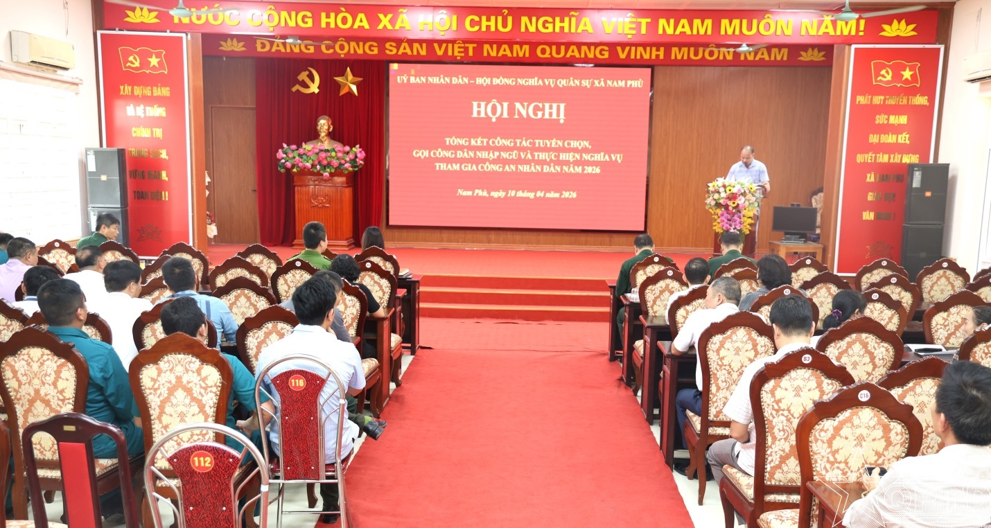 QPTĐ-Chiều 10-4, UBND xã Nam Phù đã tổ chức hội nghị tổng kết công tác tuyển chọn, gọi công dân nhập ngũ và thực hiện nghĩa vụ tham gia Công an nhân dân năm 2026.