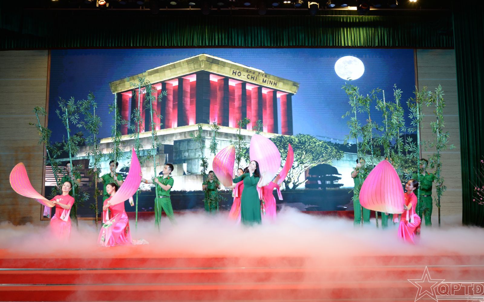 Thủ trưởng Cục Chính trị, Bộ Tư lệnh Thủ đô Hà Nội tặng hoa chúc mừng Đoàn văn công.