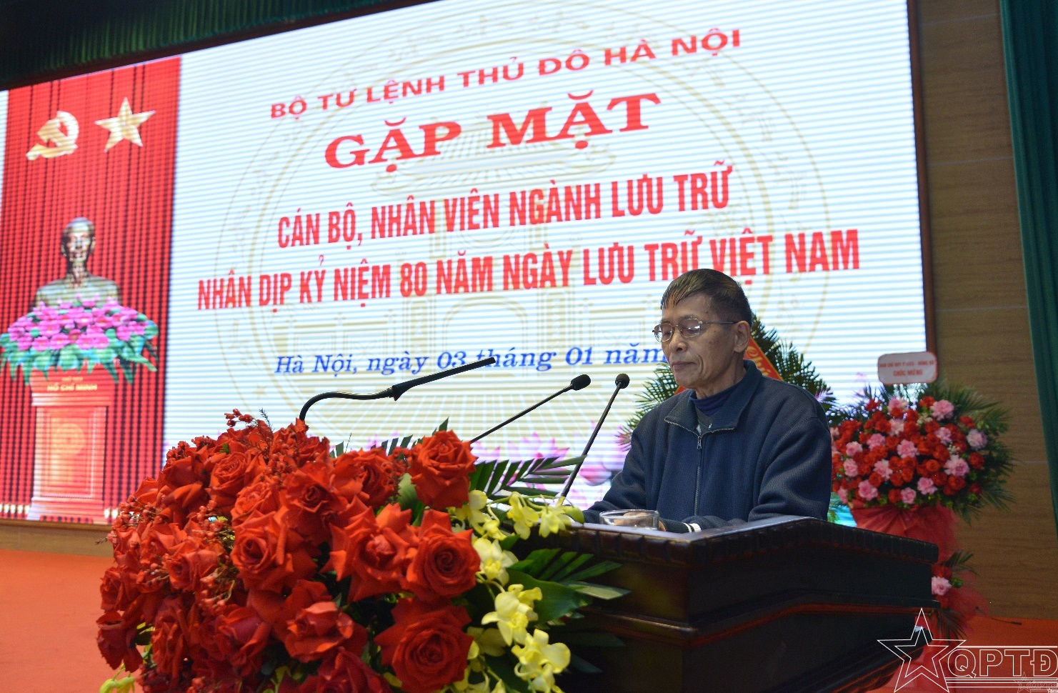Phát biểu tại buổi gặp mặt, Thiếu tướng Nguyễn Đình Thạo, Phó Tư lệnh-Tham mưu trưởng Bộ Tư lệnh Thủ đô Hà Nội nhiệt liệt chúc mừng và biểu dương những kết quả mà đội ngũ cán bộ, nhân viên làm công tác văn thư, bảo mật, lưu trữ trong Bộ Tư lệnh đã đạt được trong những năm qua.