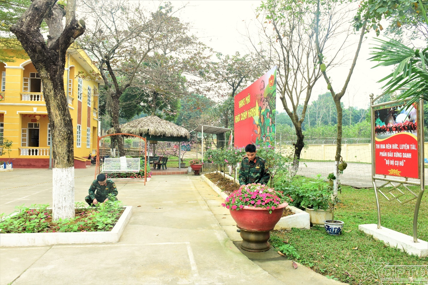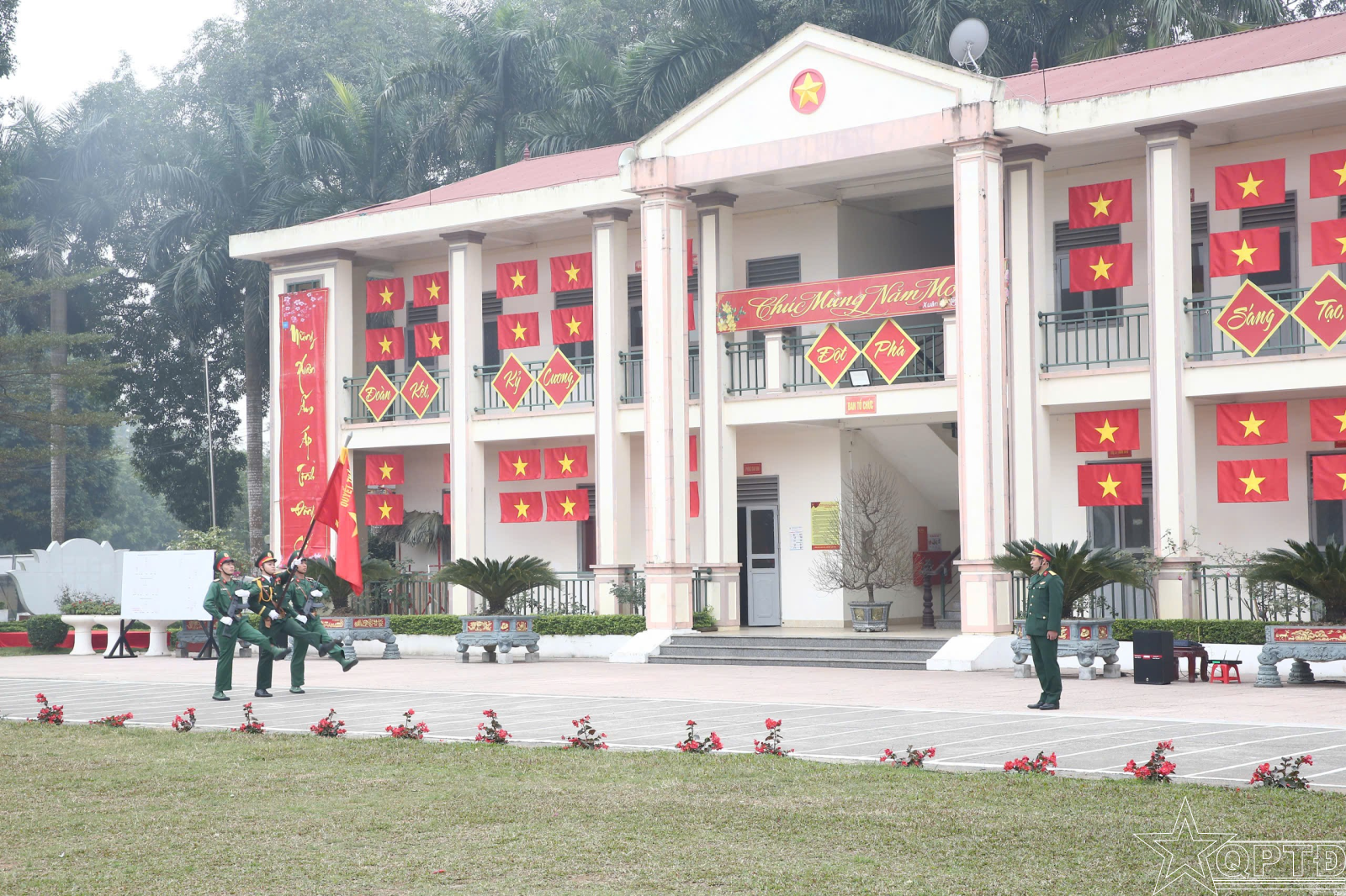 Một góc khuôn viên Tiểu đoàn 5, Trung đoàn 692, Sư đoàn Bộ binh 301 khoác lên mình diện mạo mới để chào đón Tết cổ truyền của dân tộc. Những thảm hoa rực rỡ và hàng khẩu hiệu "Sống, chiến đấu, lao động và học tập theo gương Bác Hồ vĩ đại" như nhắc nhở mỗi cán bộ, chiến sĩ về niềm tự hào và trách nhiệm của người lính Thủ đô. Giữa không gian yên bình ấy, tinh thần sẵn sàng chiến đấu vẫn luôn được đặt ở mức cao nhất, để mùa Xuân của nhân dân luôn được trọn vẹn.