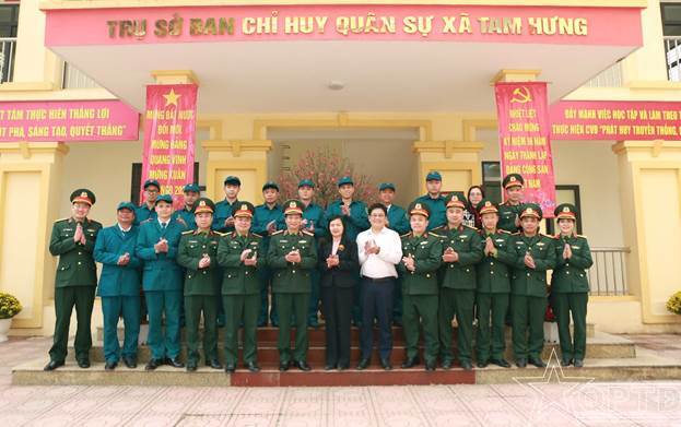 Nhiệt liệt chào mừng Thiếu tướng Nguyễn Đình Thạo, Phó Tư lệnh kiêm Tham mưu trưởng Bộ Tư lệnh thăm, tặng quà, chúc Tết Ban CHQS xã Tam Hưng.