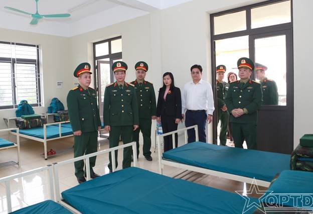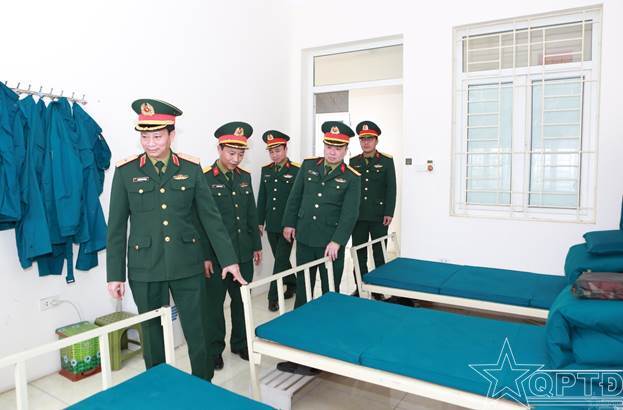 Thiếu tướng Nguyễn Đình Thạo, Phó Tư lệnh kiêm Tham mưu trưởng Bộ Tư lệnh thăm nơi ăn ở, sinh hoạt tại Ban CHQS xã Bình Minh.