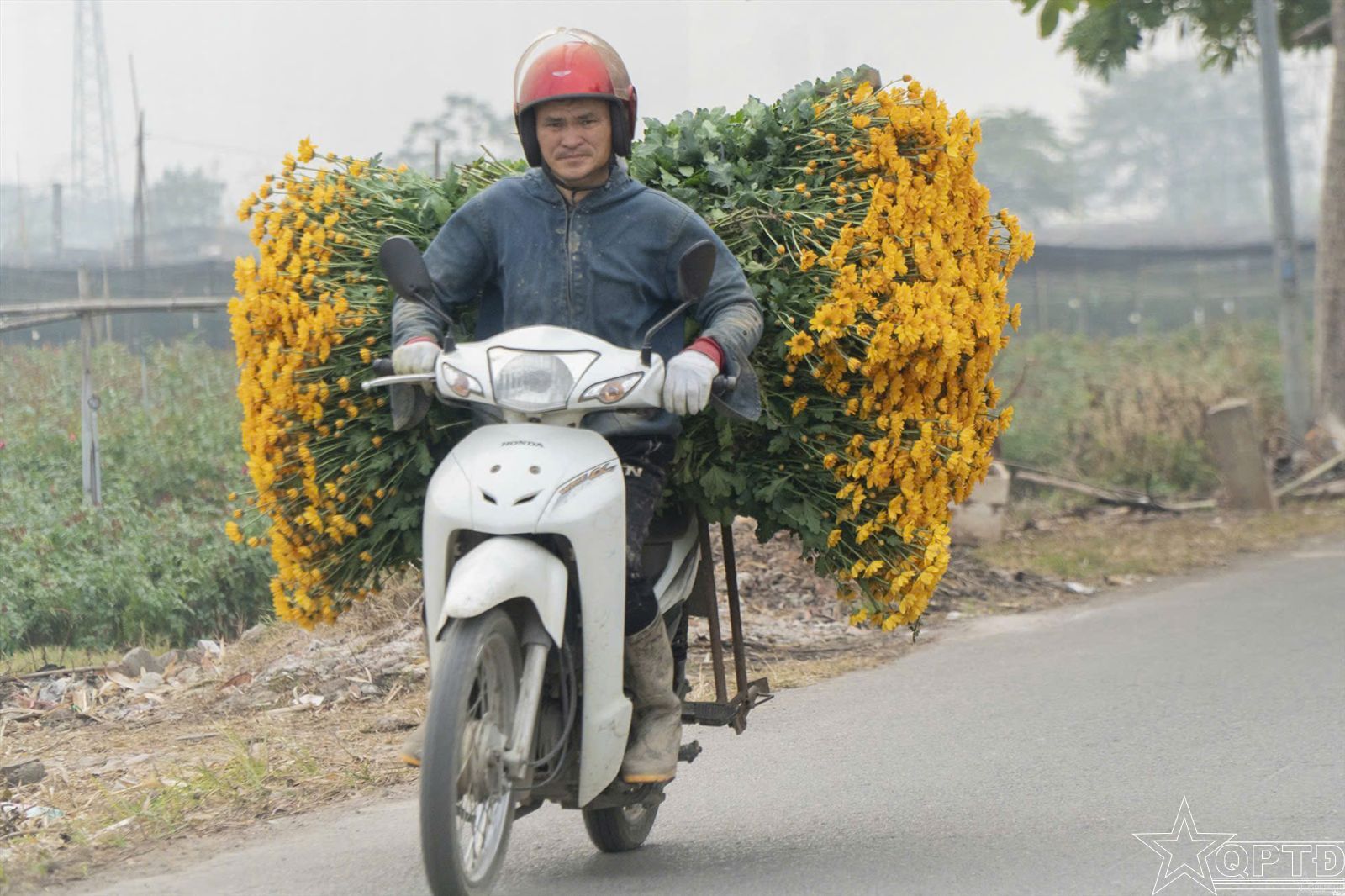 Bà Trương Thị Hằng, người có 20 năm gắn bó với nghề trồng hoa cho biết, vụ hoa Tết thường bắt đầu cho thu hoạch vào khoảng ngày 26-27 tháng Chạp, song kết quả được hay mất phụ thuộc rất lớn vào thời tiết. Thời gian này, người trồng hoa đang làm công đoạn tỉa nụ, tức là tỉa bỏ bớt để cây tập trung dinh dưỡng, sau này hoa to và đều hơn. Bà chia sẻ, một lứa cúc phải trồng từ cuối tháng 8, đầu tháng 9 âm lịch mới kịp cho vụ Tết. Nhưng trồng hoa thì không thể nói trước được, còn phụ thuộc nhiều vào thời tiết và cả giá cả thị trường. Gia đình bà có hơn một sào ruộng trồng hoa, song năm nay gặp đợt ngập úng kéo dài khiến nhiều diện tích bị mất trắng. Nghề trồng hoa vất vả và nhiều rủi ro, chỉ hi vọng vào tình hình thời tiết và giá cả thị trường.