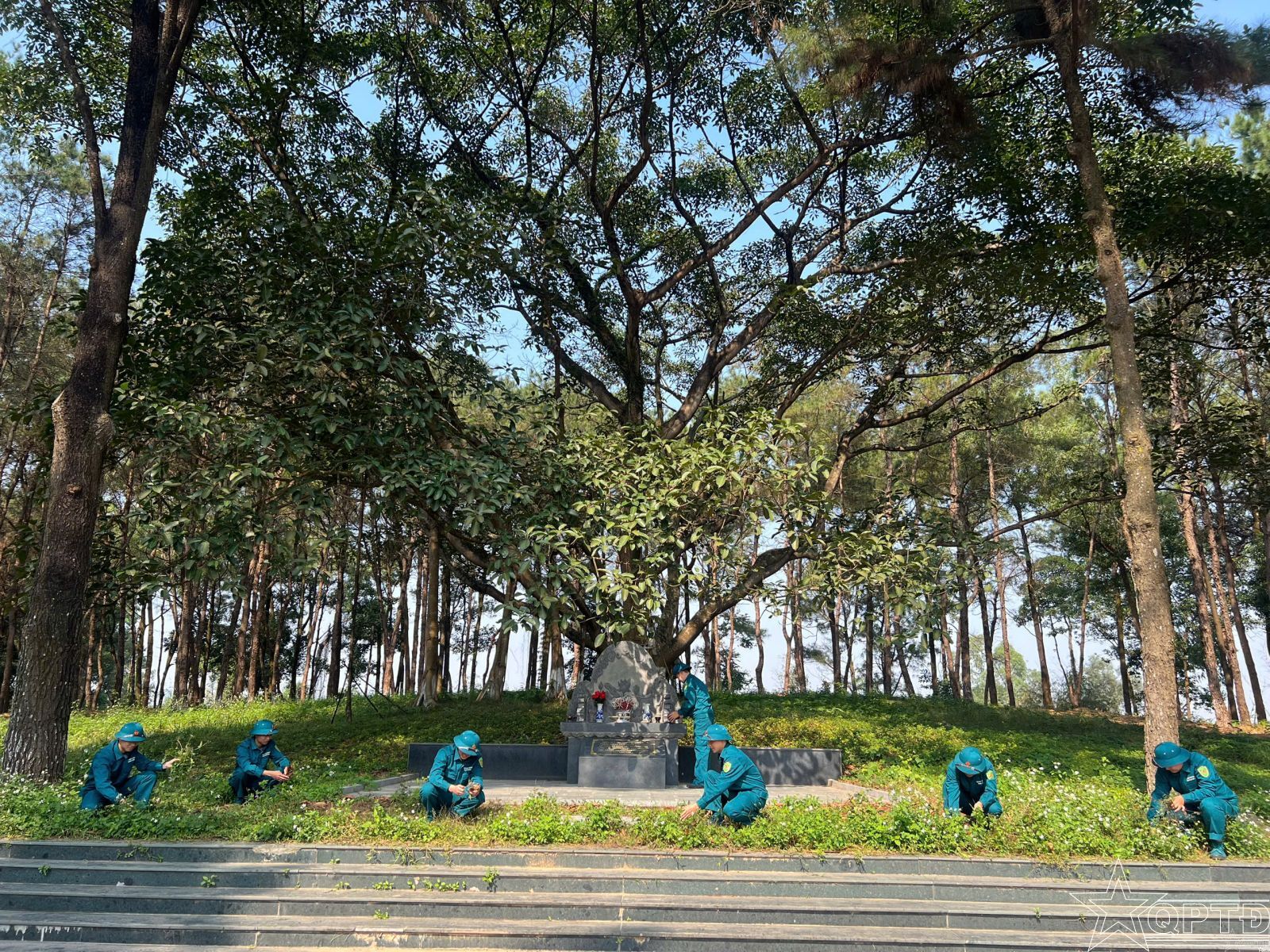 Dân quân xã Vật Lại vẫn thường xuyên vệ sinh môi trường xung quanh cây đa Bác Hồ trồng năm xưa.