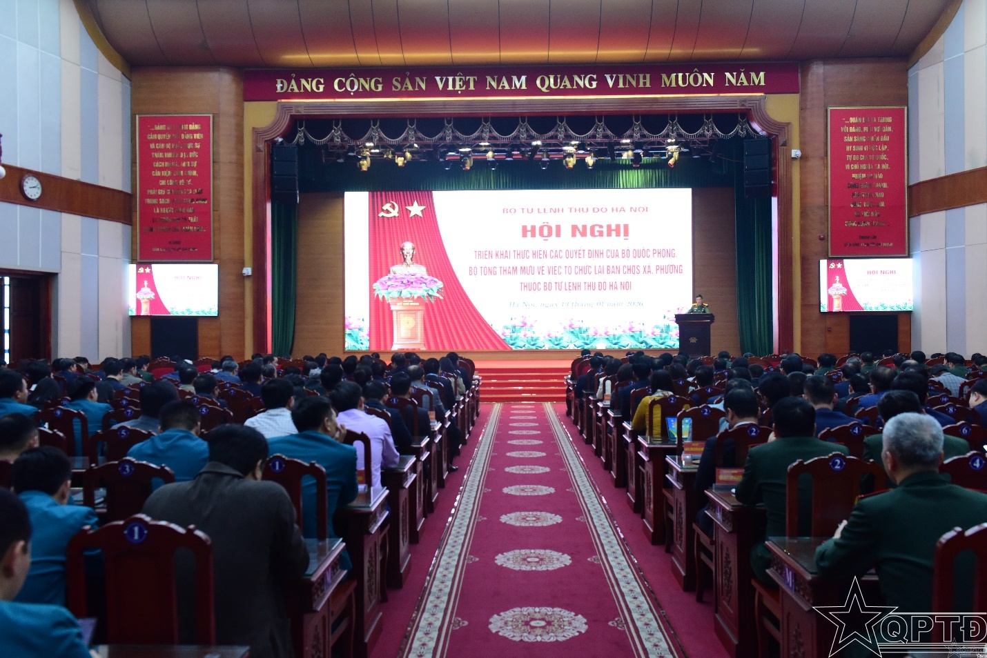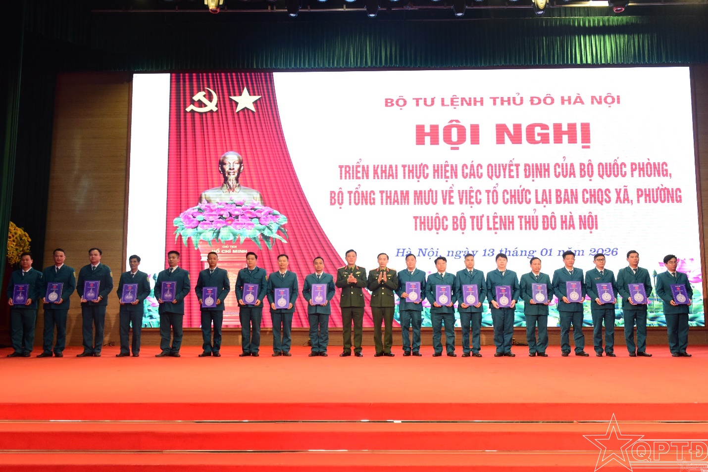 QPTĐ-Chiều 13/1/2026, Bộ Tư lệnh Thủ đô Hà Nội đã tổ chức hội nghị triển khai thực hiện các quyết định của Bộ Quốc phòng, Bộ Tổng Tham mưu về việc tổ chức lại Ban Chỉ huy quân sự (CHQS) xã, phường. Đây được xem là đợt điều chỉnh quy mô lớn, mang tính chiến lược nhằm tinh gọn, mạnh hóa lực lượng quân sự cơ sở, đáp ứng yêu cầu bảo vệ Thủ đô trong tình hình mới. Thiếu tướng Đào Văn Nhận, Ủy viên Ban Thường vụ Thành ủy, Tư lệnh Bộ Tư lệnh Thủ đô Hà Nội chủ trì hội nghị. Cùng dự có Thiếu tướng Lưu Nam Tiến, Thành ủy viên, Phó Bí thư Thường trực Đảng ủy, Chính ủy Bộ Tư lệnh Thủ đô Hà Nội; các đồng chí trong Thường vụ Đảng ủy, thủ trưởng Bộ Tư lệnh và lãnh đạo cấp ủy, chính quyền 126 xã, phường.