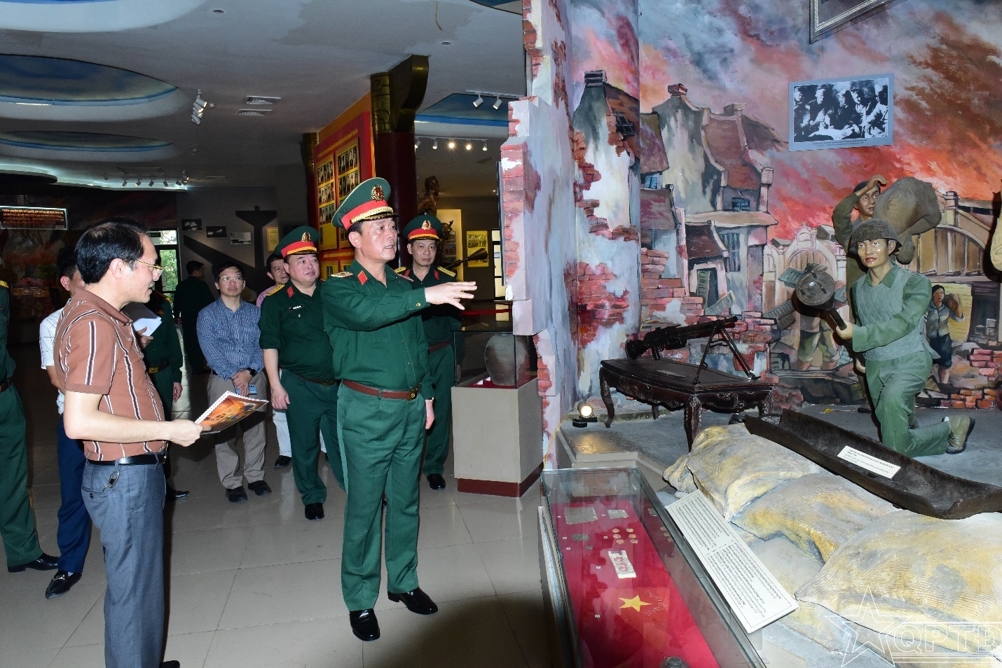 Đồng chí Tư lệnh định hướng sắp xếp lại các mô hình, hiện vật để tối ưu không gian tham quan.